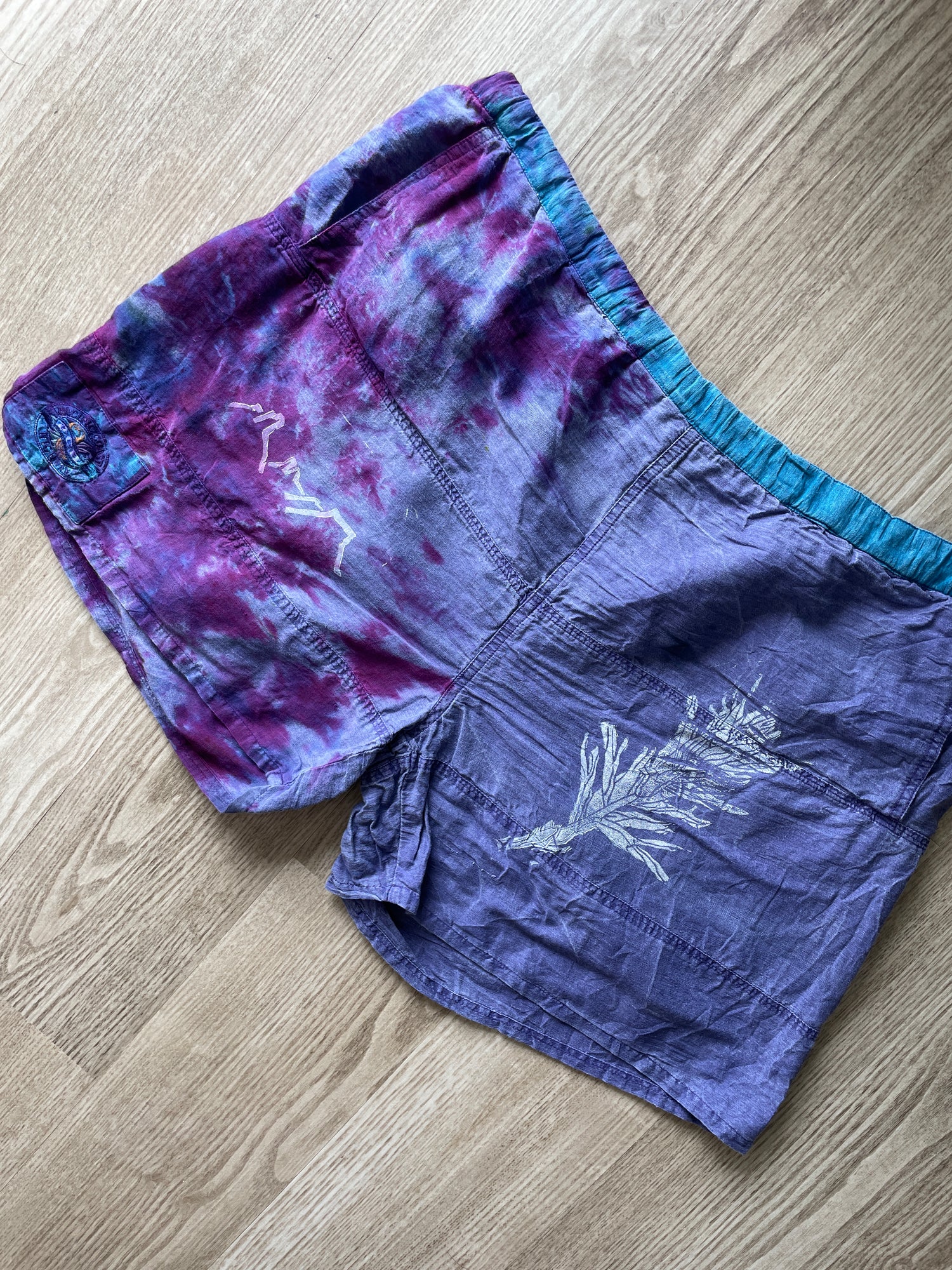 2XL Men’s Pacific Coast Highway Tie Dye Vintage Chino Shorts | One-Of-a-Kind Upcycled Blue and Purple Crumpled Casual Shorts