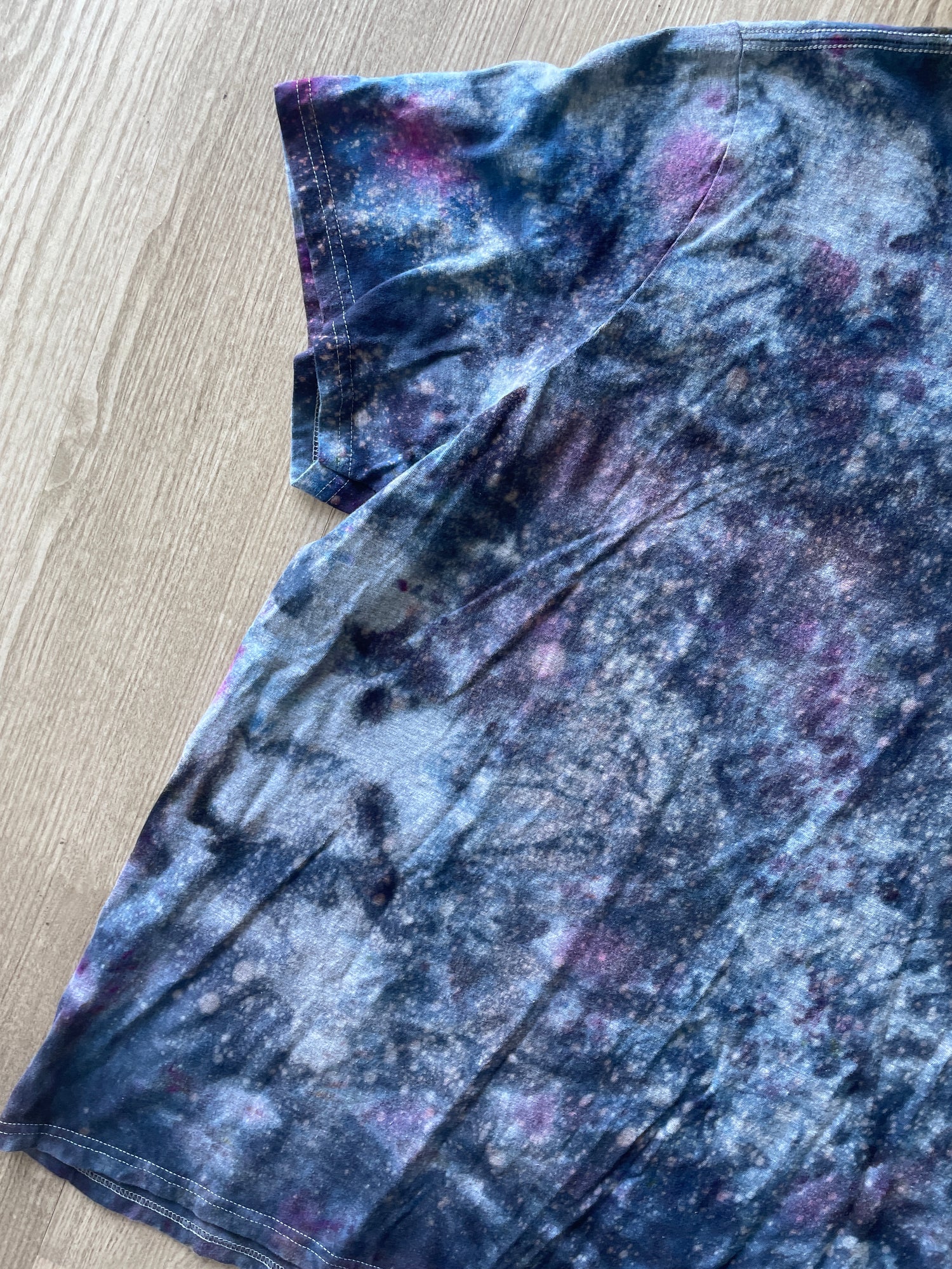 gray tshirt dyed with shades of gray and black "galaxy" ice dye tie dye pattern