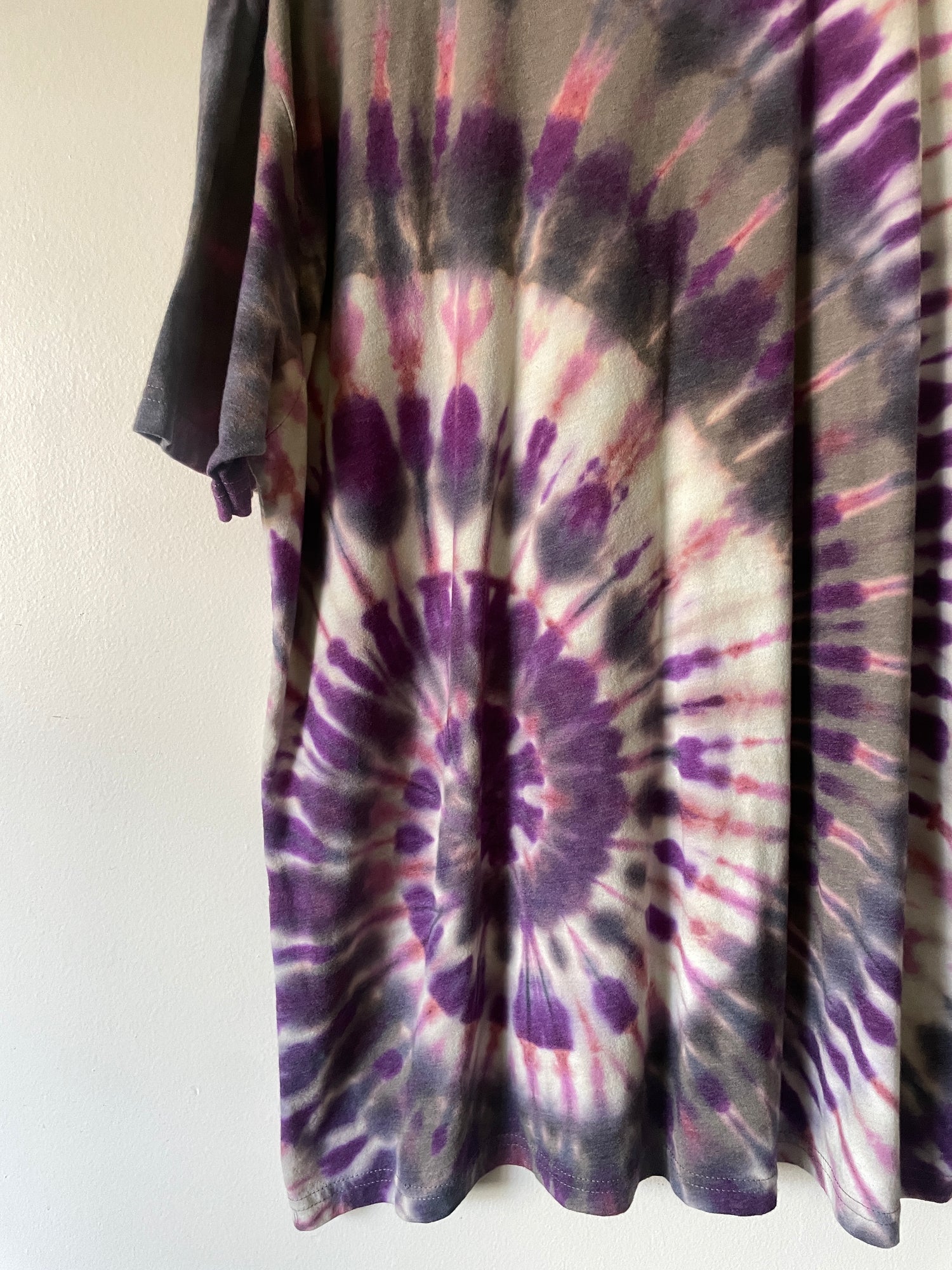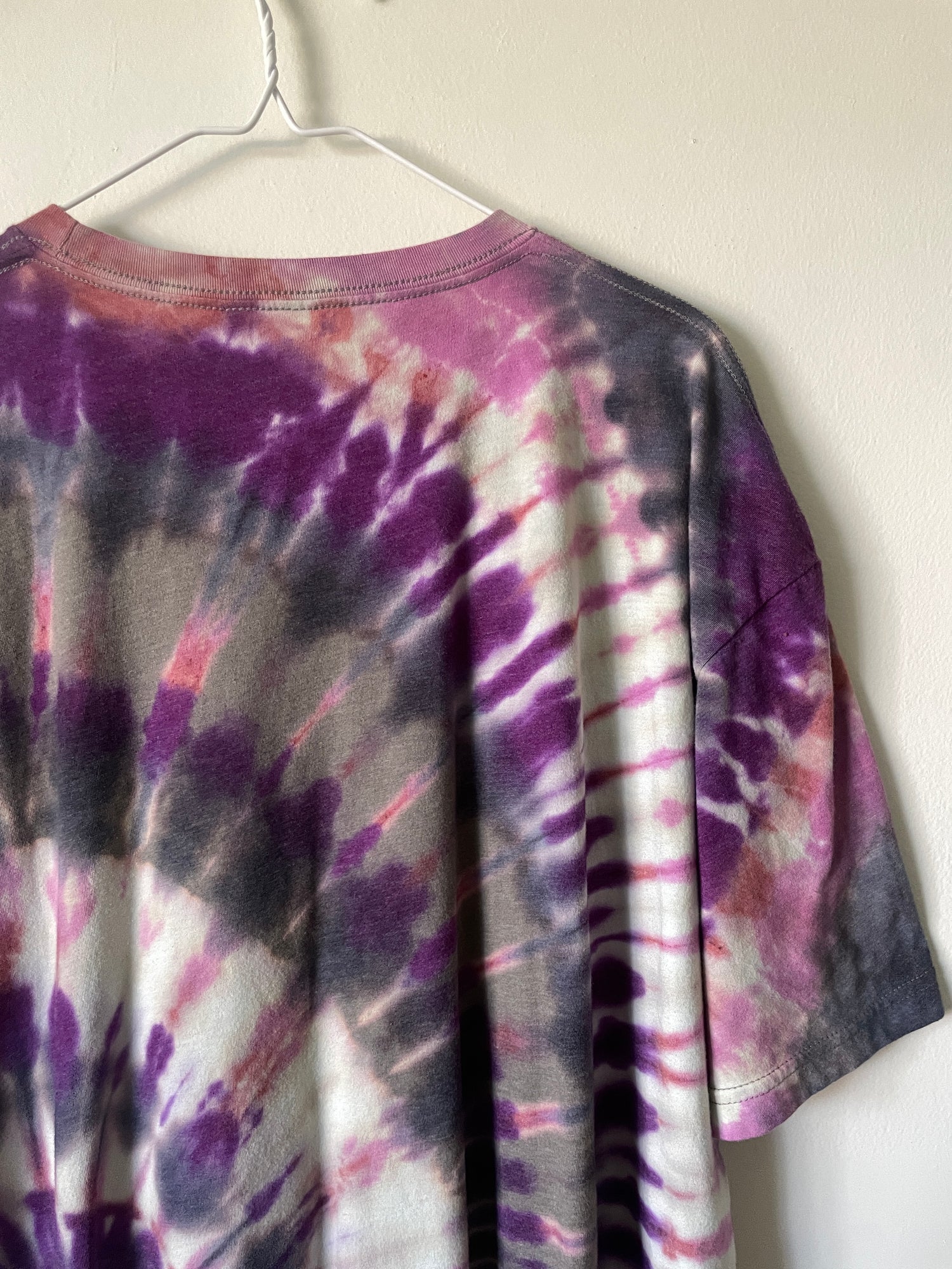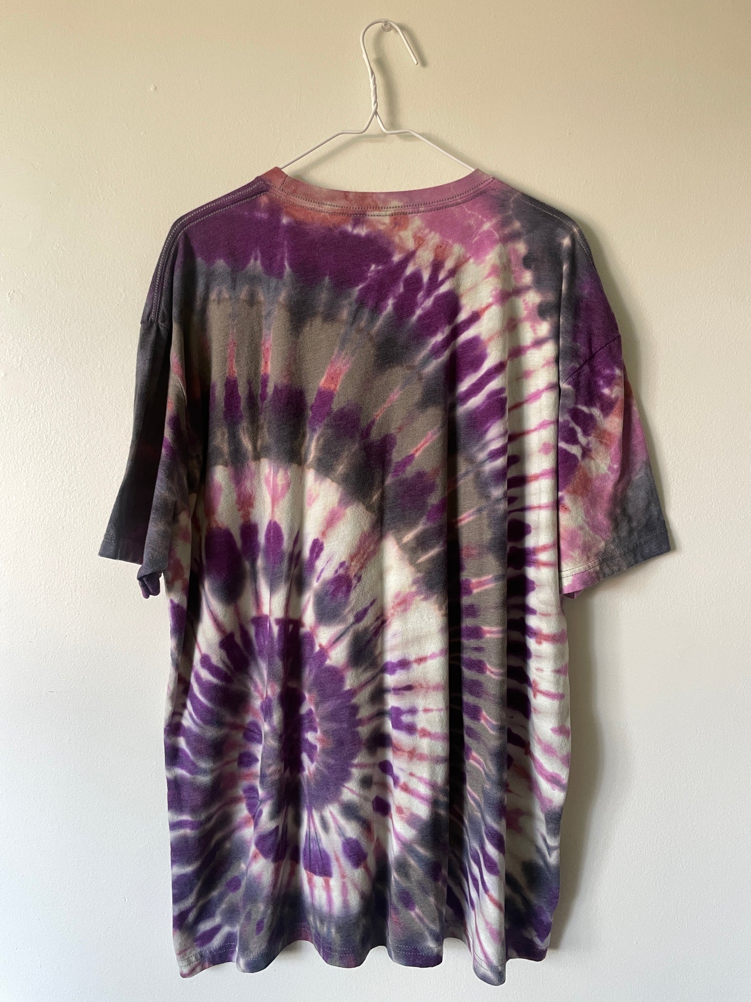 3XL Men’s Fisher Beer Handmade Reverse Tie Dye Short Sleeve T-Shirt | One-Of-a-Kind Upcycled Tan and Pink Spiral Tie Dye Top