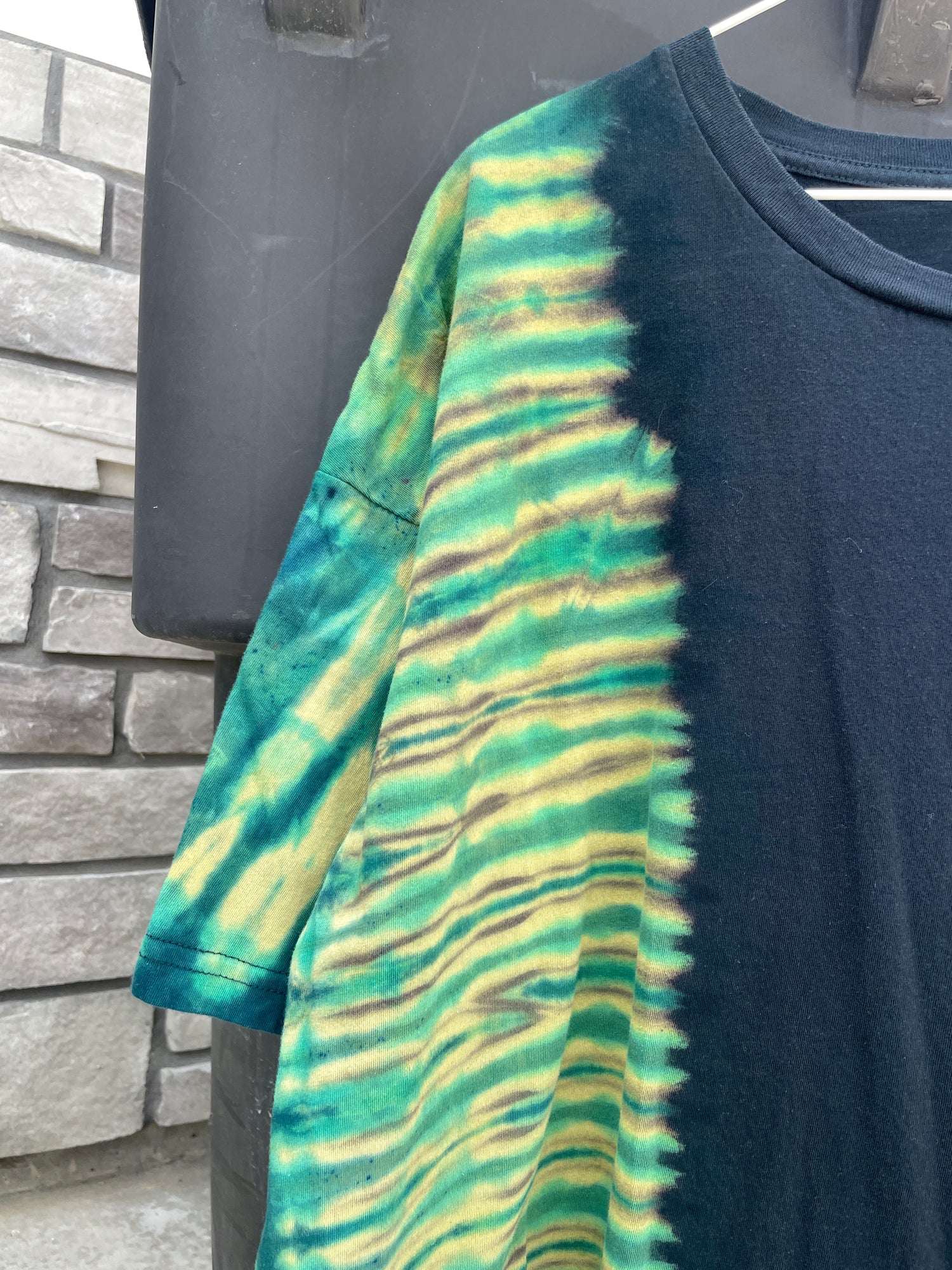 3XL Men's Venus Fly Trap Death Bouquet Handmade Tie Dye T-Shirt | One-Of-a-Kind Upcycled Black and Turquoise Short Sleeve Shirt