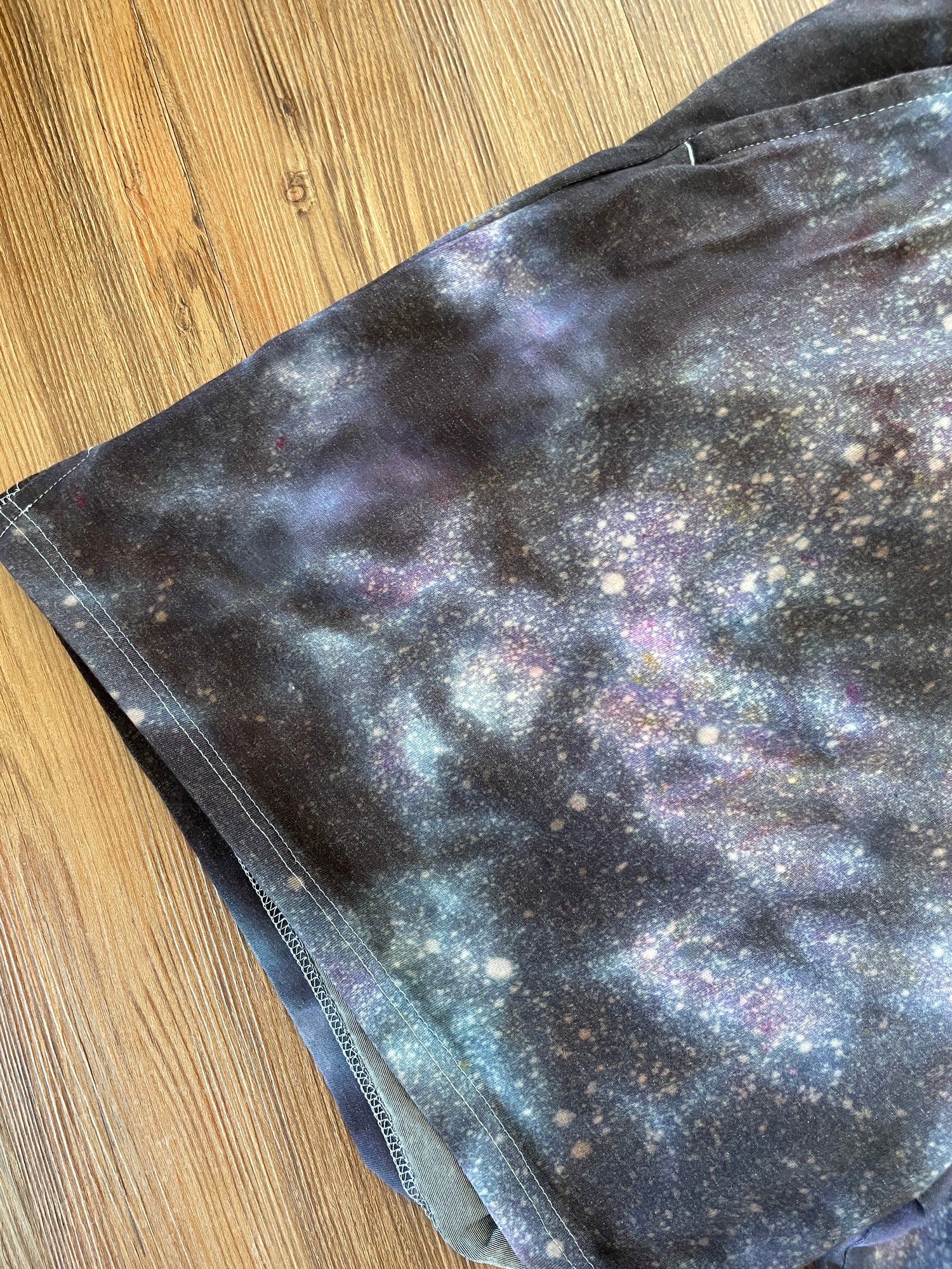 gray tshirt dyed with shades of purple galaxy ice dye tie dye pattern