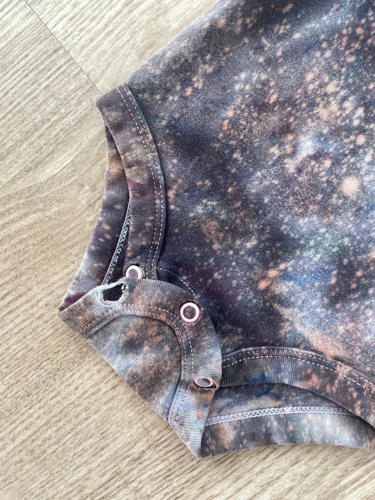 6-9 Months Climbing Shoe Short Sleeve Baby Onesie | Handmade, Upcycled Tie Dye Cotton Onesie | Galaxy Ice Dyed Gray and White Baby Clothing