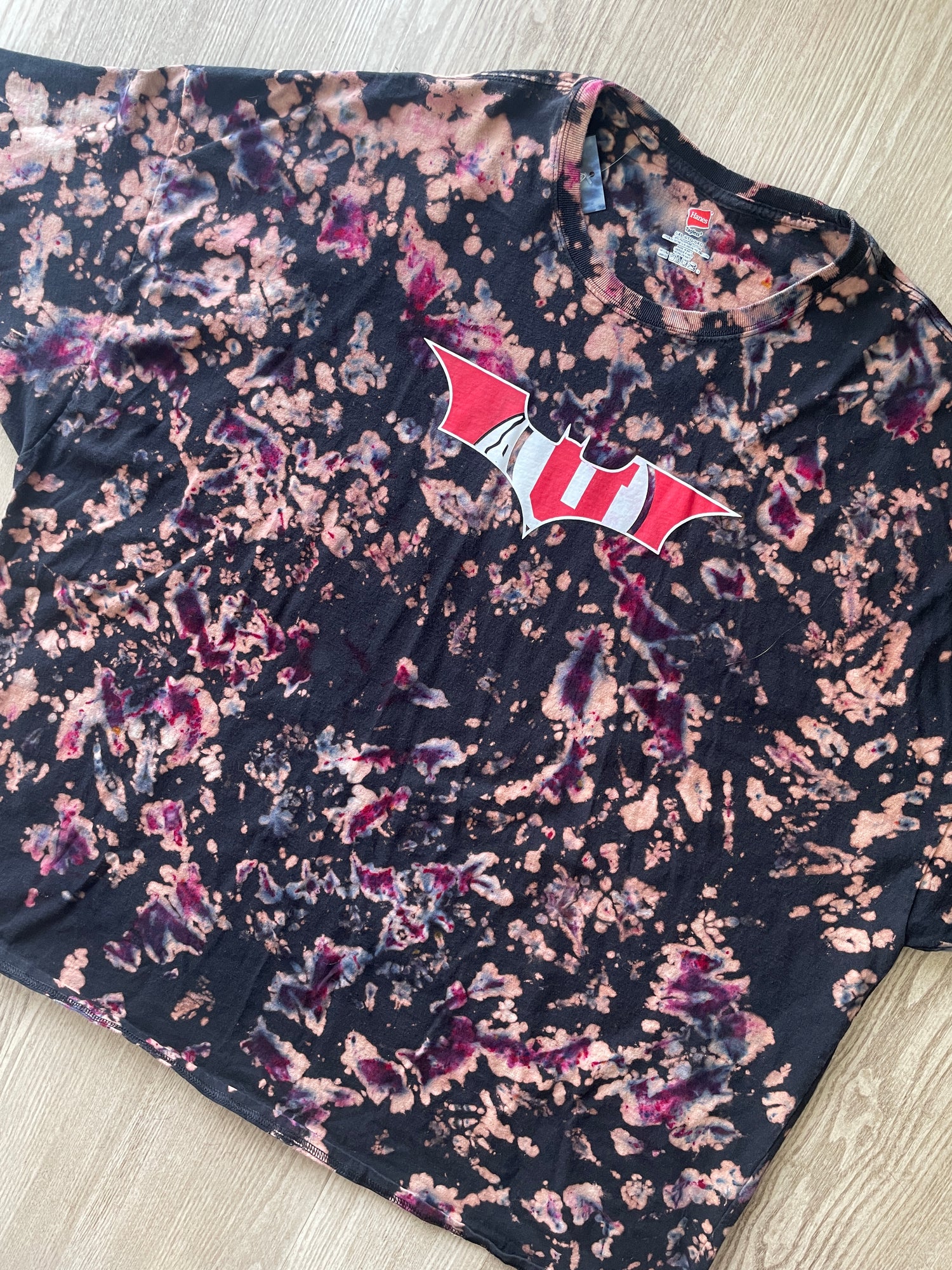 6XL Men’s Utah Utes Batman Reverse Tie Dye T-Shirt | One-Of-a-Kind Black and Red Crumpled Short Sleeve