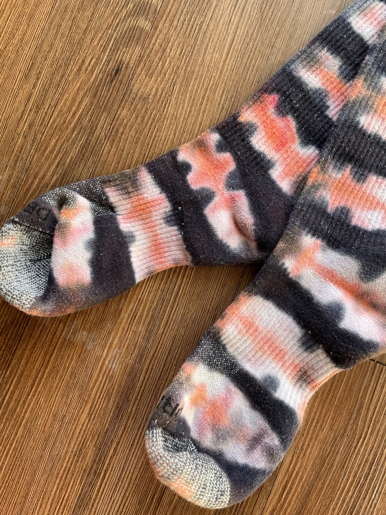 Orange, Black, and White Tie Dye Nike Dri-FIT Everyday Plus Training Socks - Size Medium (Men's 6-8/Women's 7-10)