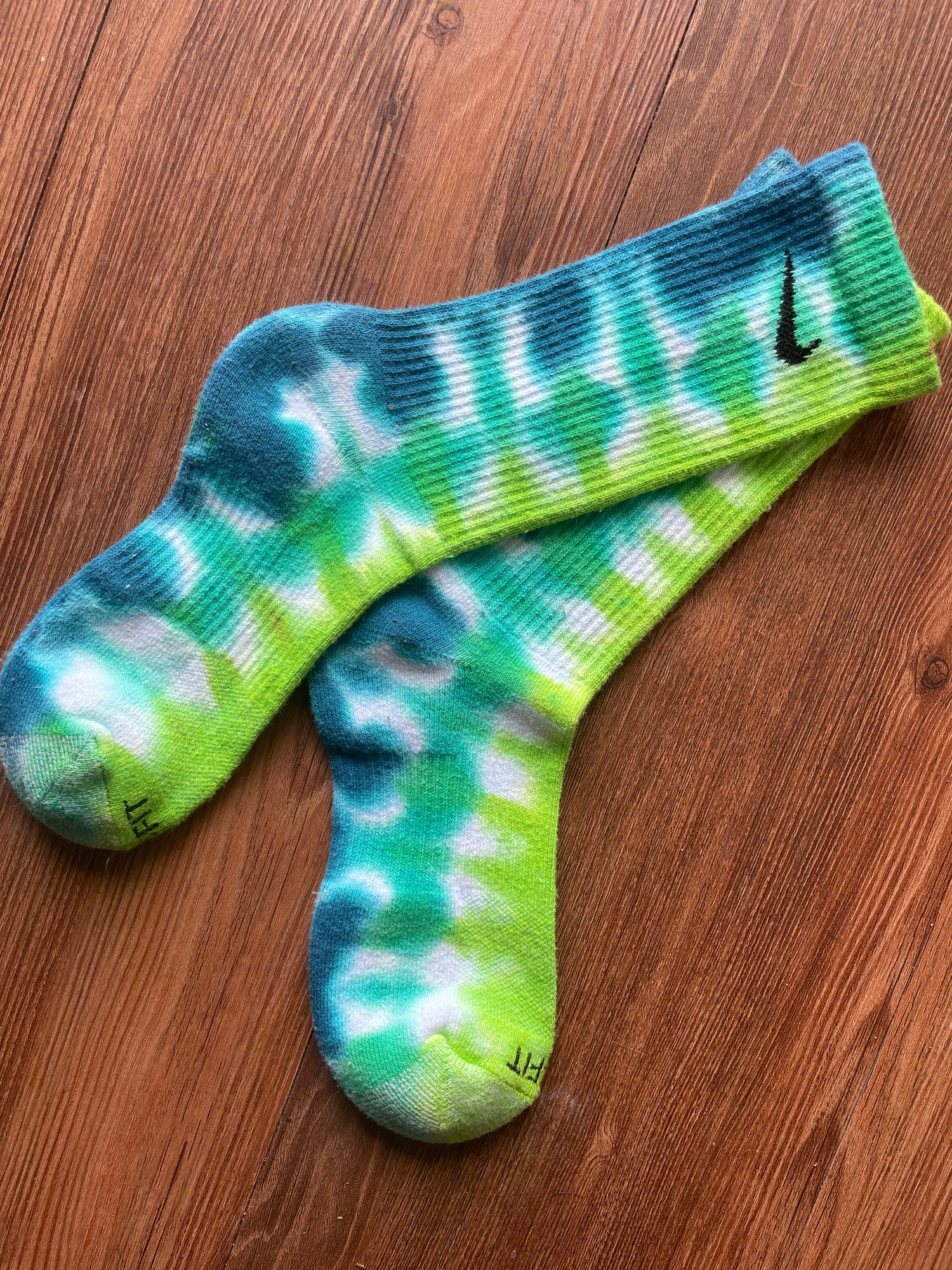 Blue, Green, and Teal Tie Dye Nike Dri-FIT Training Socks - Size Medium (Men's 6-8/Women's 7-10)