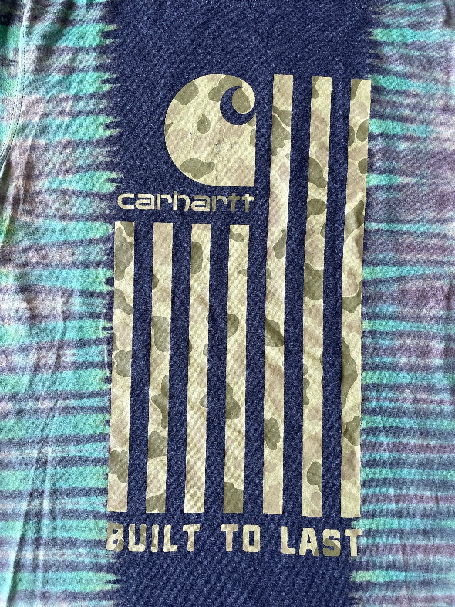 Carhartt "Built to Last" Camo Flag Short Sleeve Gray and Green Reverse Tie Dye T-Shirt | One-of-a-Kind | Men's Medium