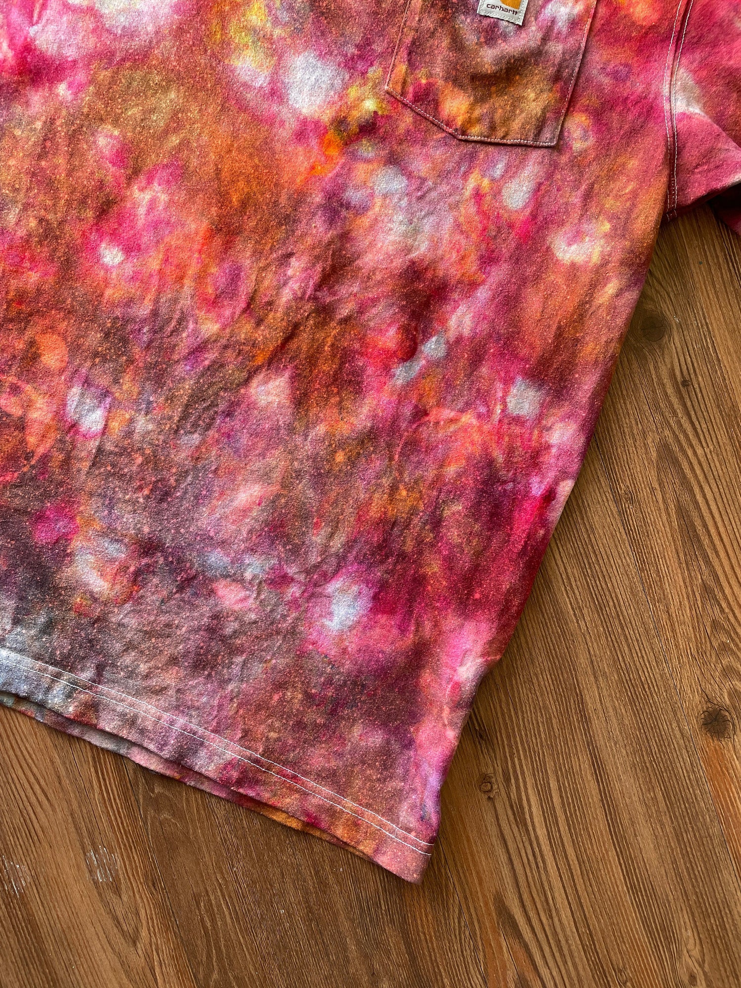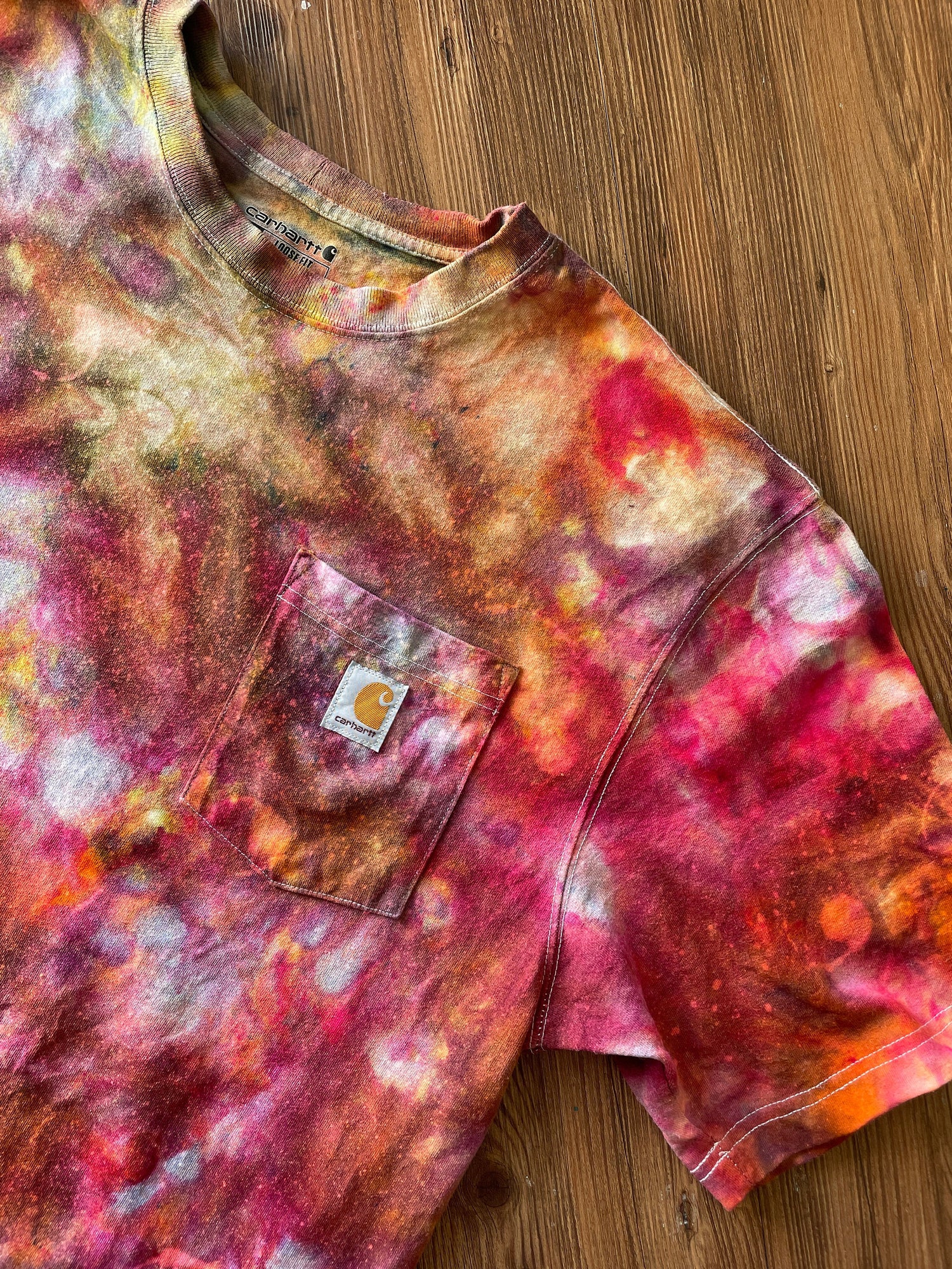 Carhartt Pocket Handmade Galaxy Tie Dye t-shirt | Oversized Loose Fit Fire Dye Ice Dye Short Sleeve Top Unisex Size Large