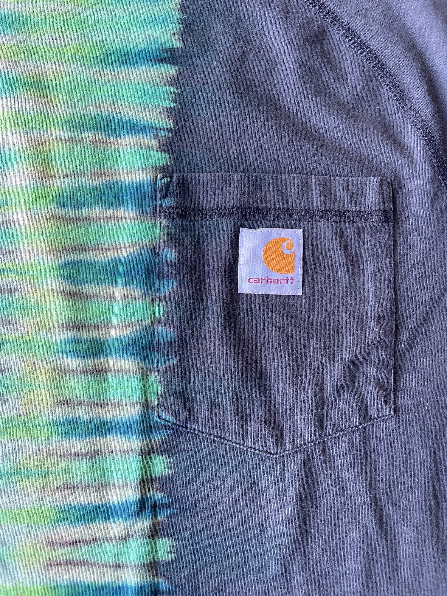 Carhartt Short Sleeve Black and Green Reverse Tie Dye T-Shirt | One-of-a-Kind | Men's Medium