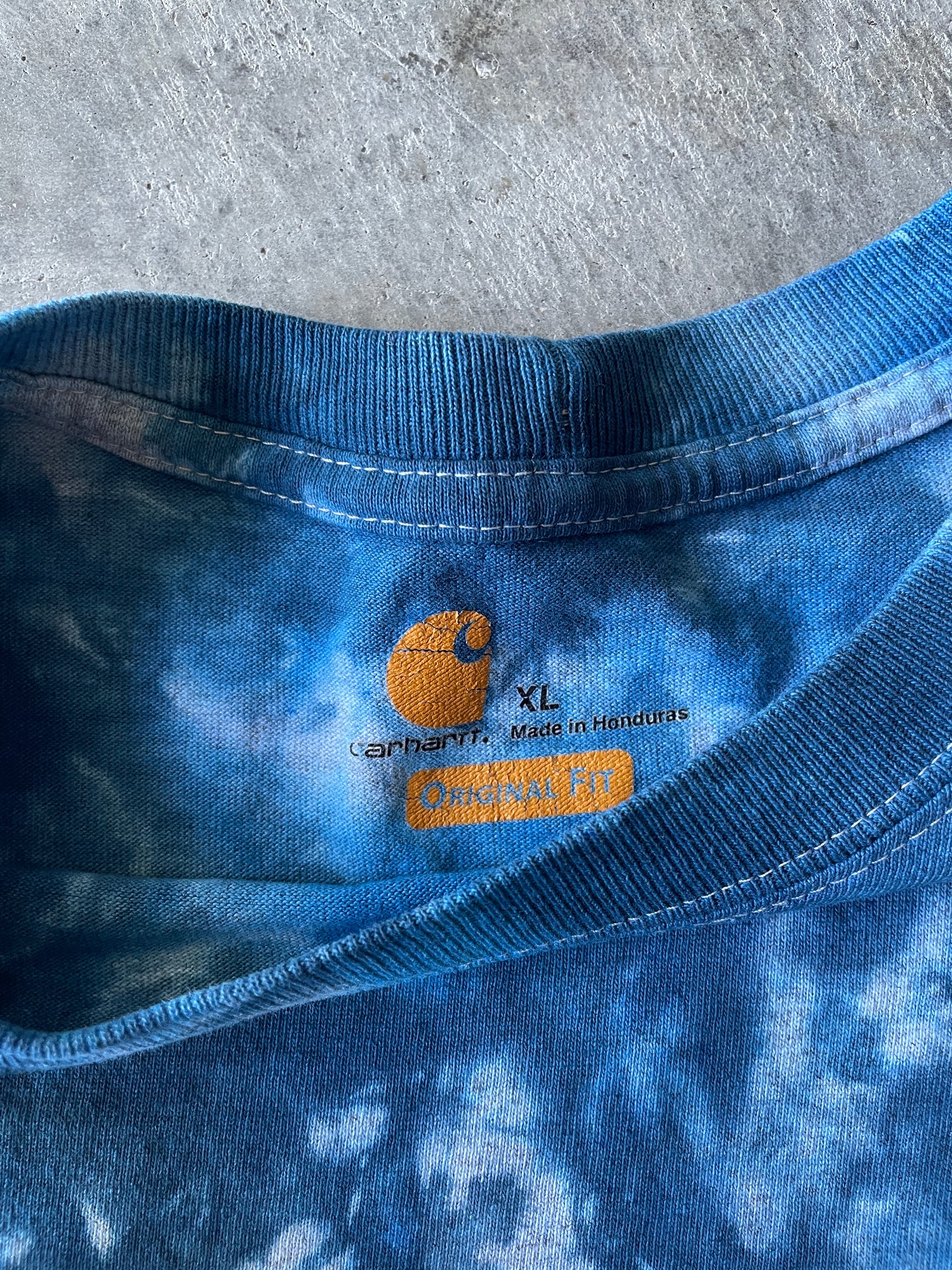 Carhartt Short Sleeve Blue and Gray Tie Dye T-Shirt | One-of-a-Kind | Men's XL