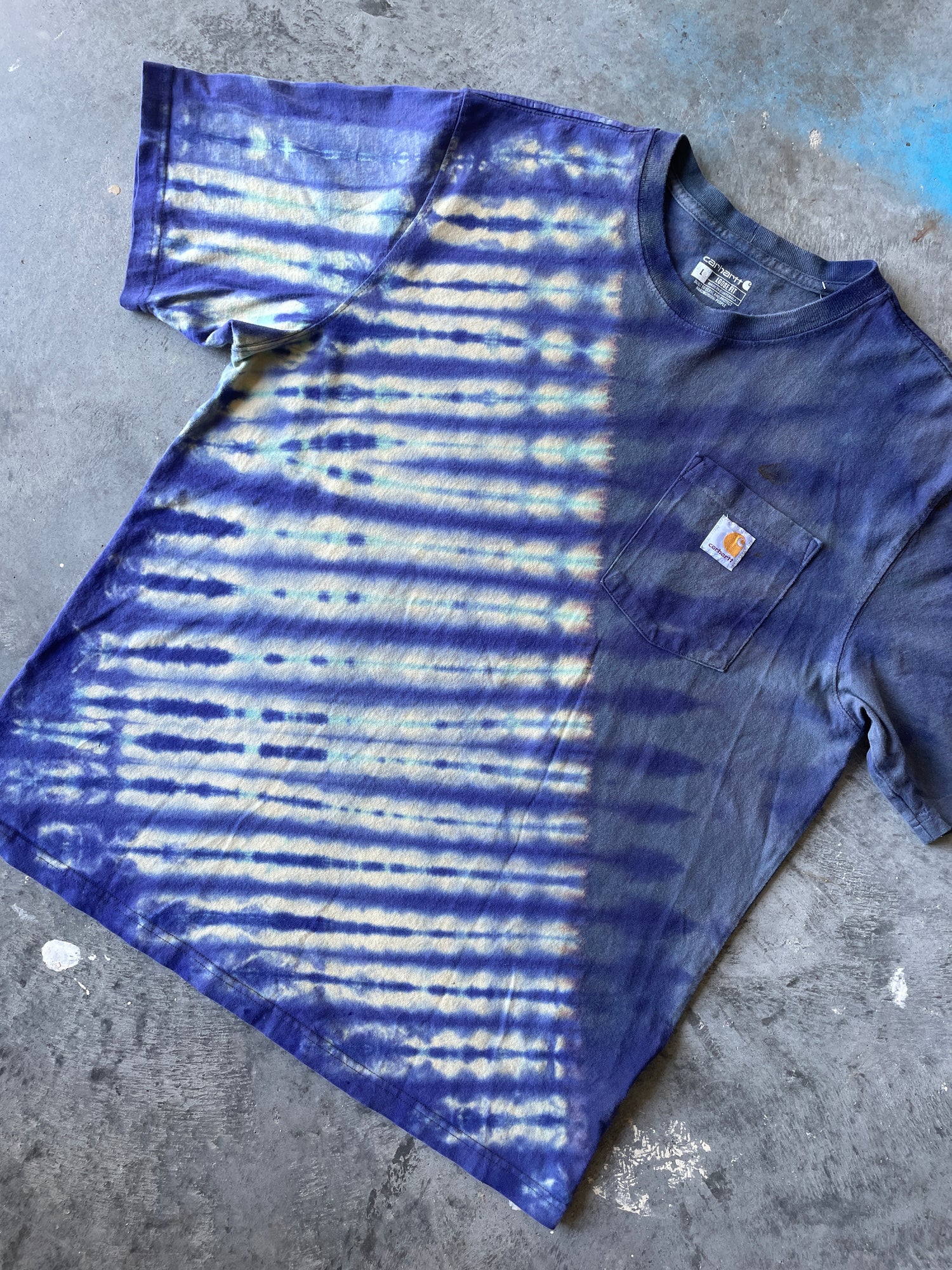 Carhartt Short Sleeve Blue and Purple Reverse Tie Dye T-Shirt | One-of-a-Kind | Men's Large