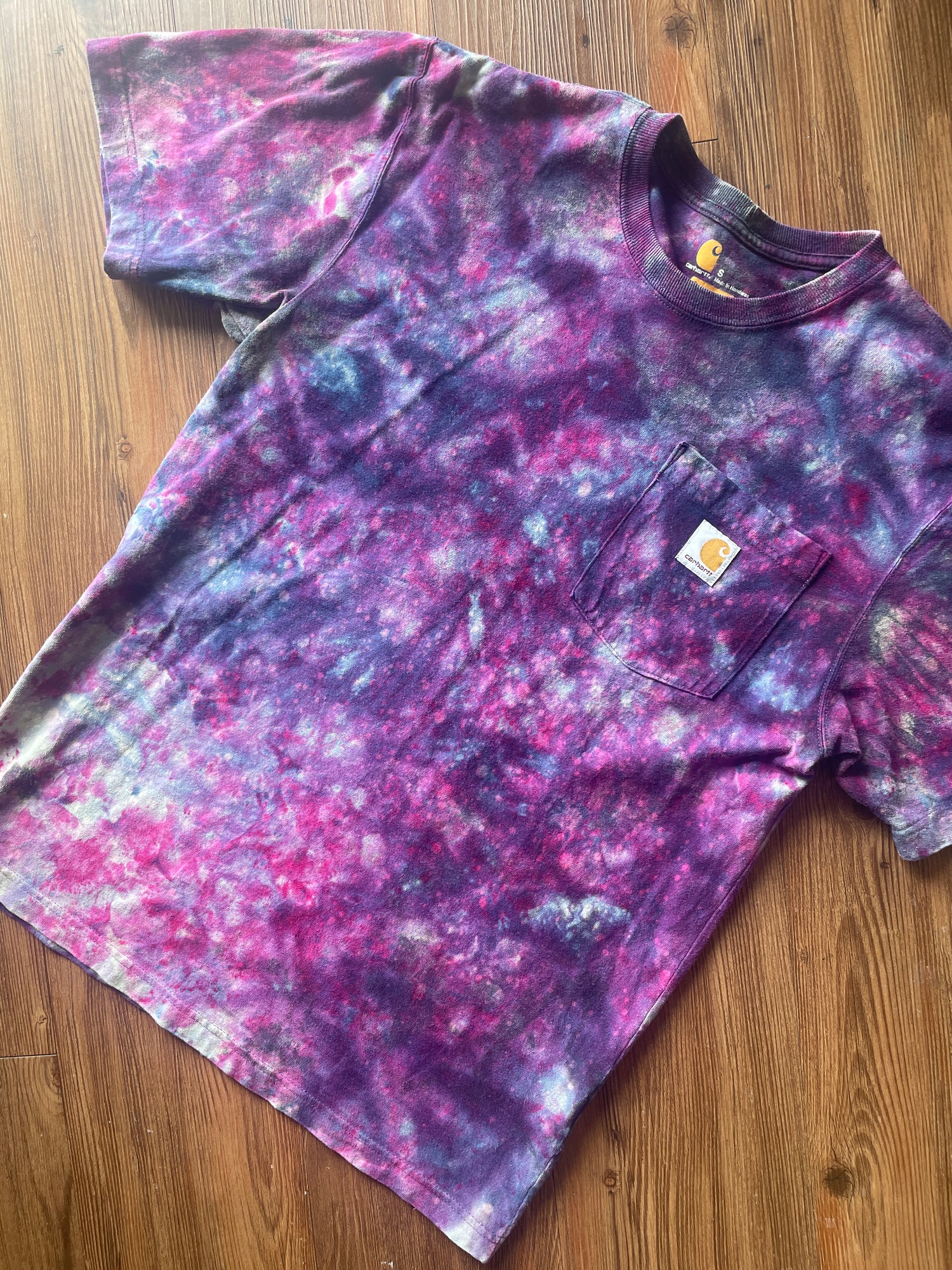 Small Men’s Carhartt Galaxy Tie Dye Handmade T-Shirt | Purple and Blue Reverse Tie Dye Short Sleeve