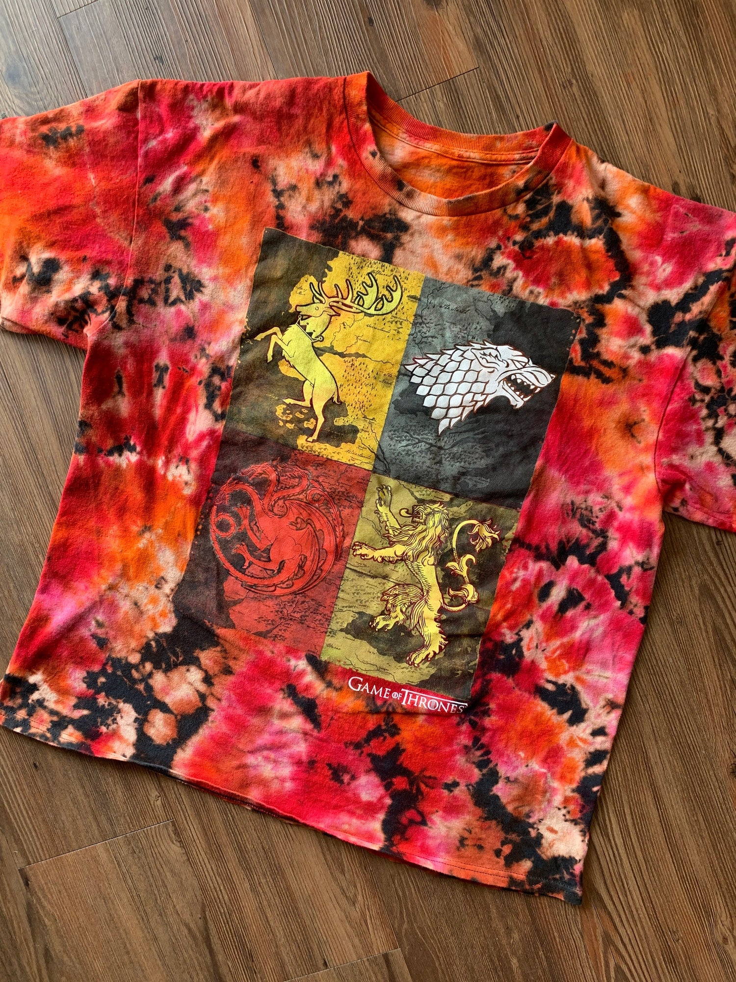 Game of Thrones Houses Handmade Reverse Tie Dye t-shirt | Bleach Acid Dye Men's L/XL Short Sleeve Top | Upcycled & Tie Dyed by Hand