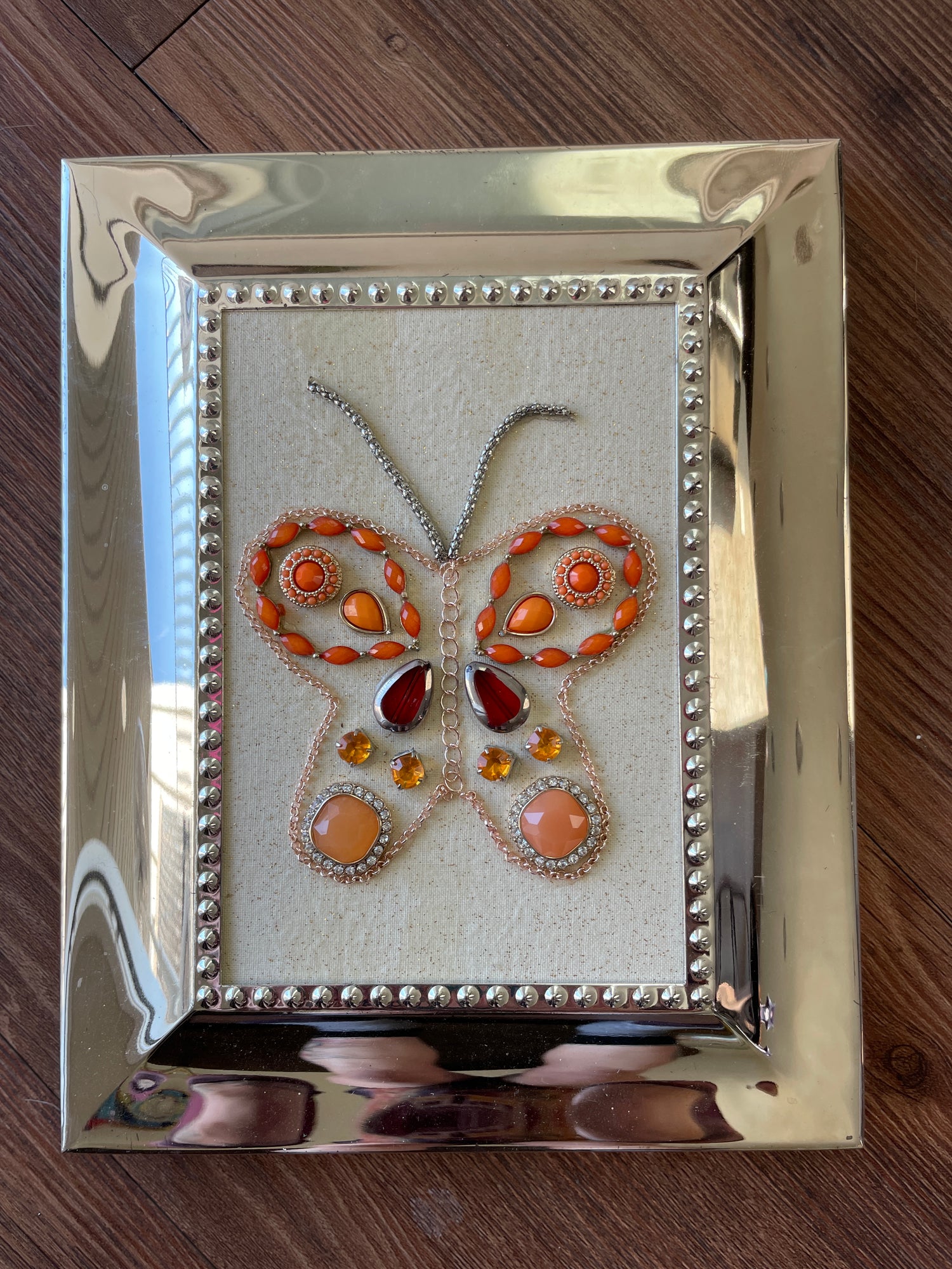 Photos don’t do this beautiful handmade butterfly justice! The jewelry twinkles beautifully underneath lights.
