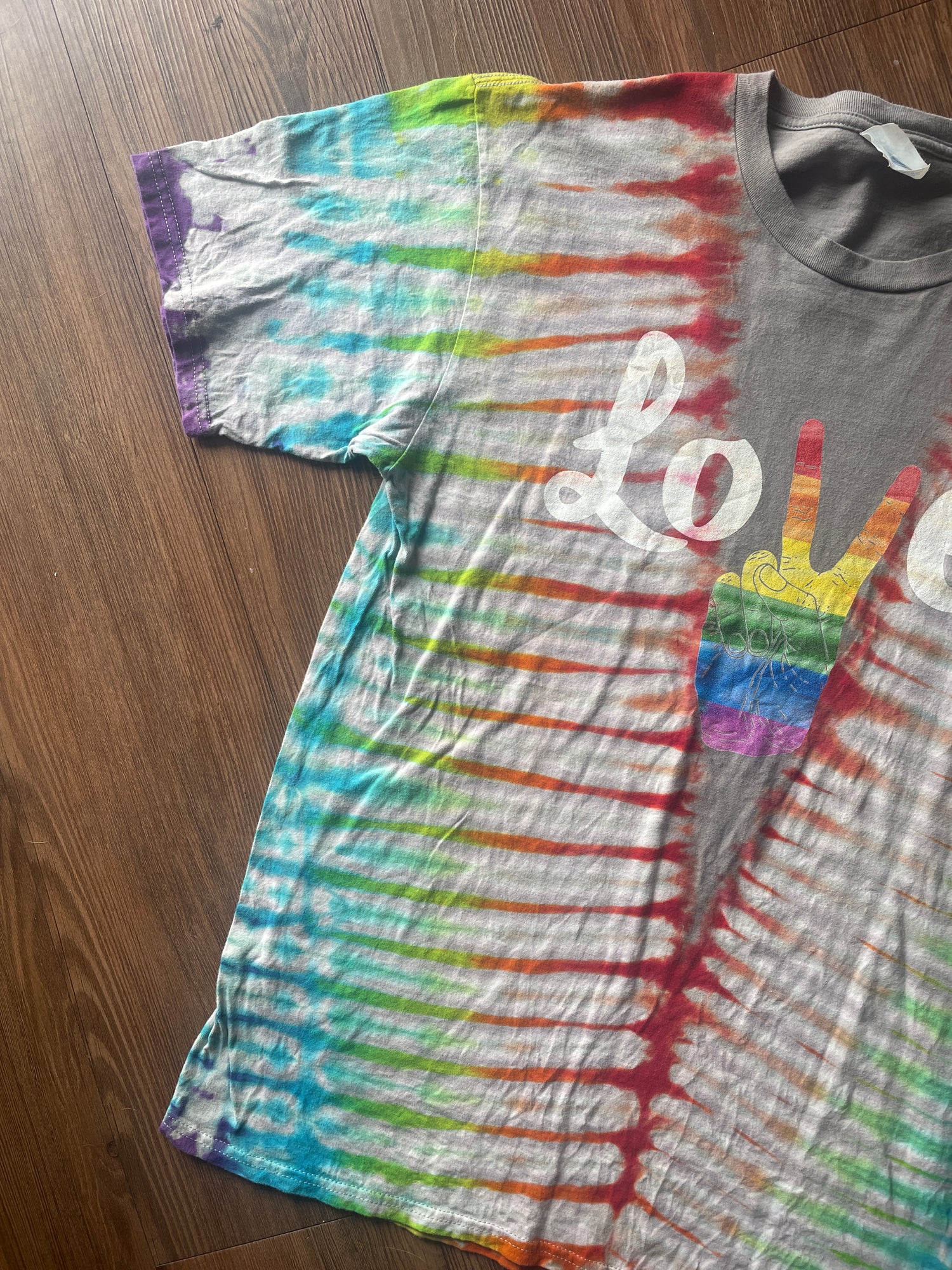 Medium Men’s Peace Love PRIDE Handmade Tie Dye T-Shirt | Gray Rainbow V-Pleated Tie Dye Short Sleeve