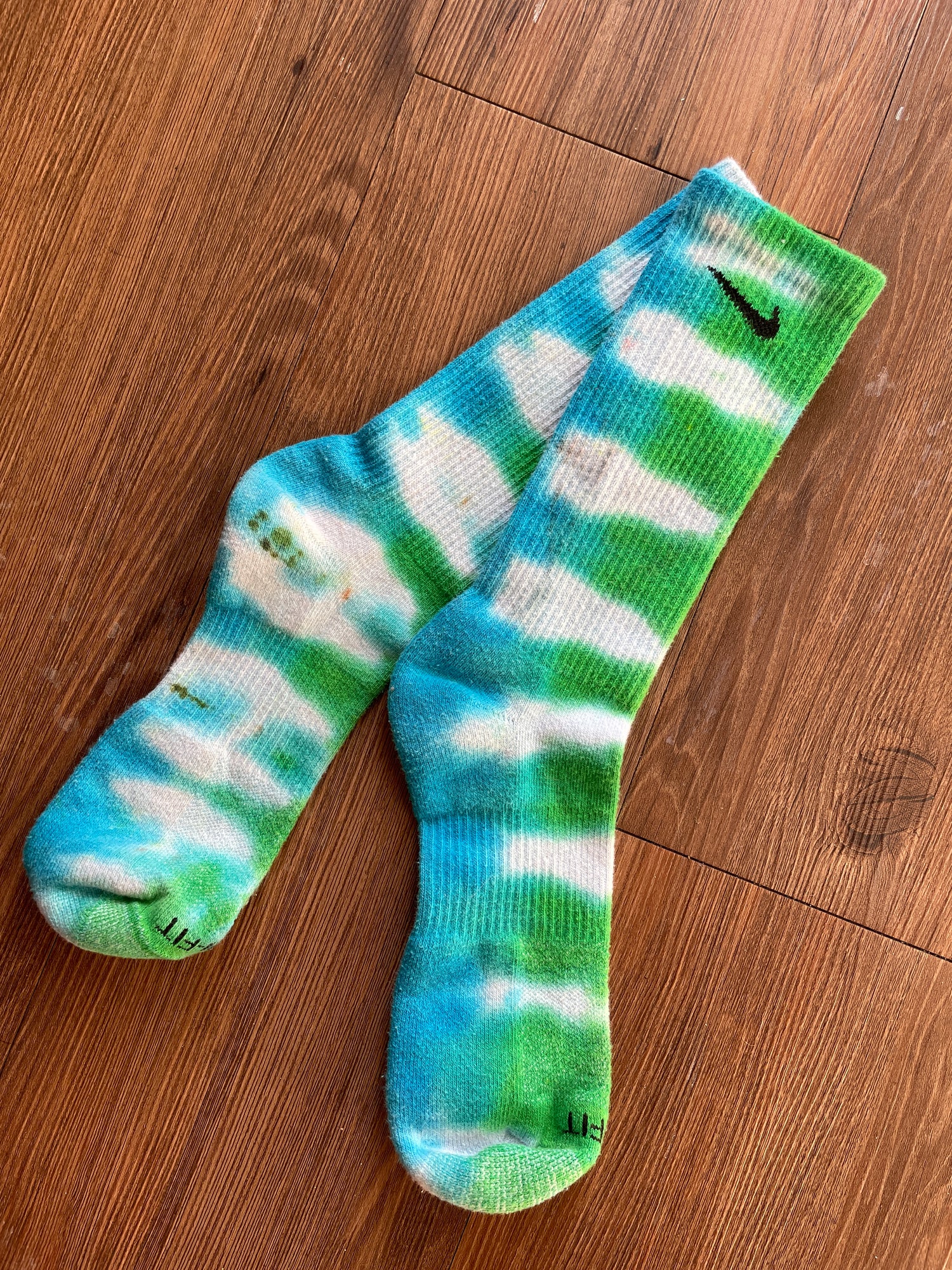 Green, Blue, and White Tie Dye Nike Dri-FIT Everyday Plus Training Socks - Size Medium (Men's 6-8/Women's 7-10)