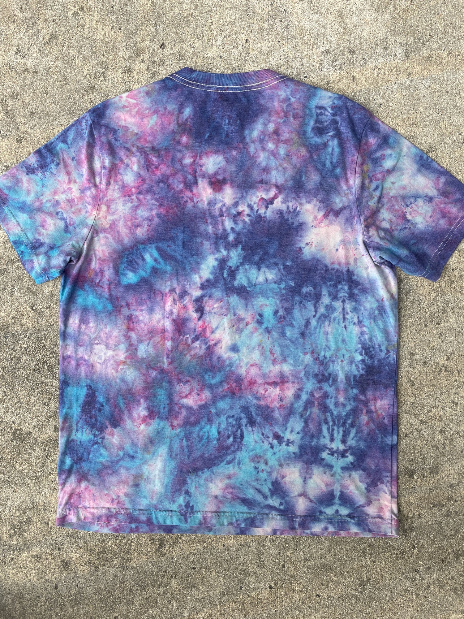 Hand-Printed Alien Blue and Purple Galaxy Dye Short Sleeve T-Shirt | Men's Size XL