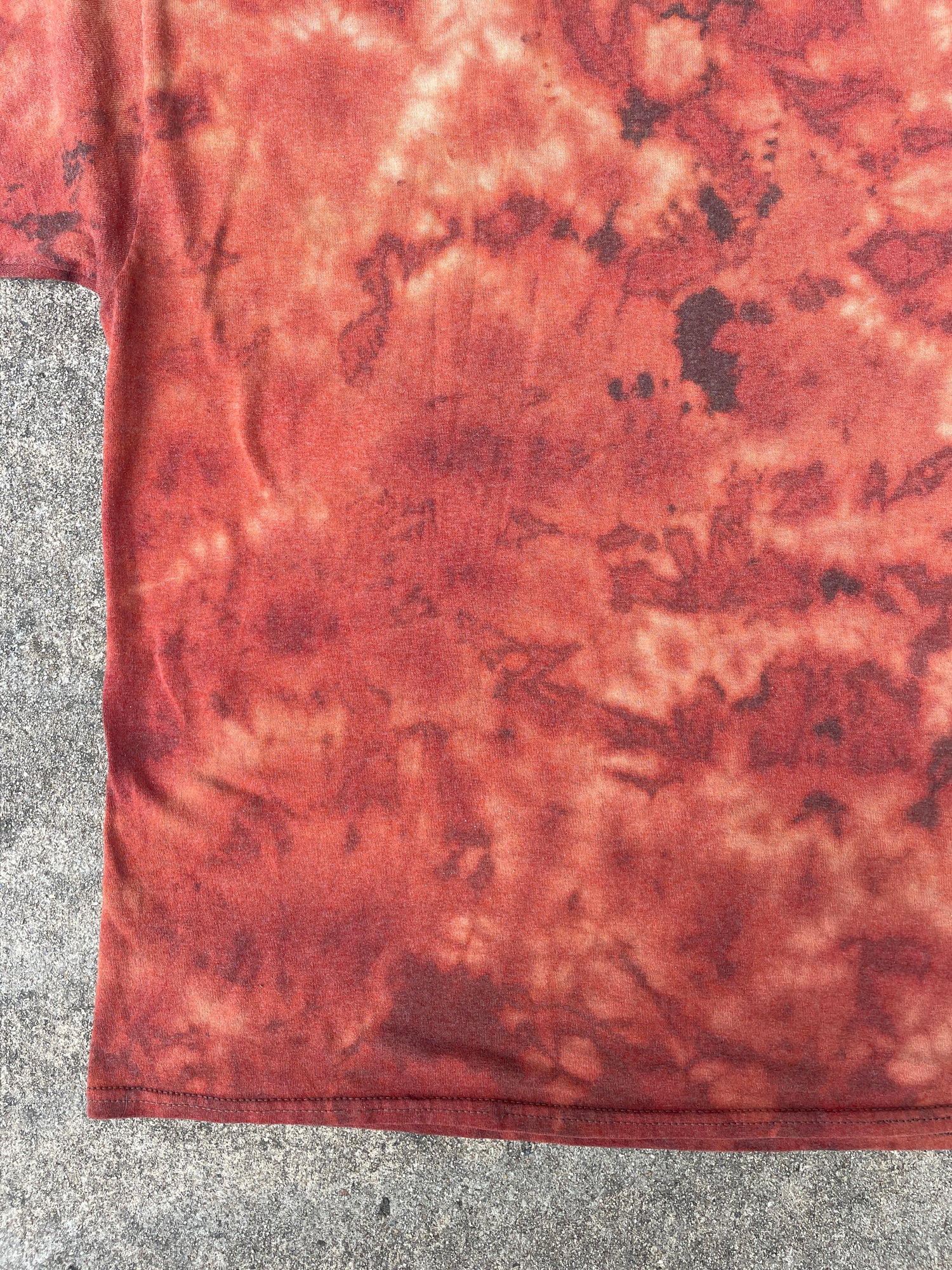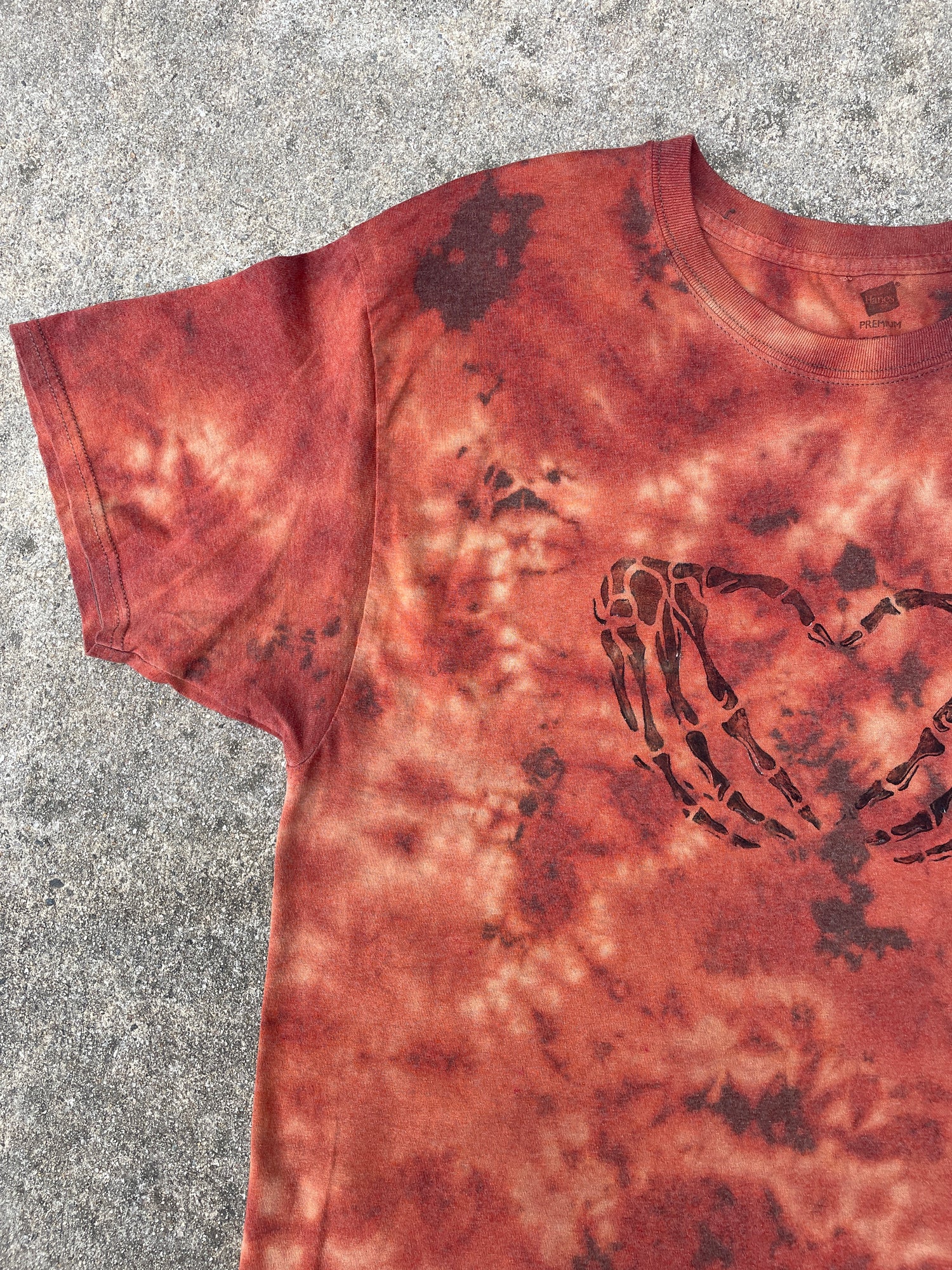 Hand-Printed Skeleton Heart Hands Brown and Orange Reverse Tie Dye Short Sleeve T-Shirt | Men's Size XL