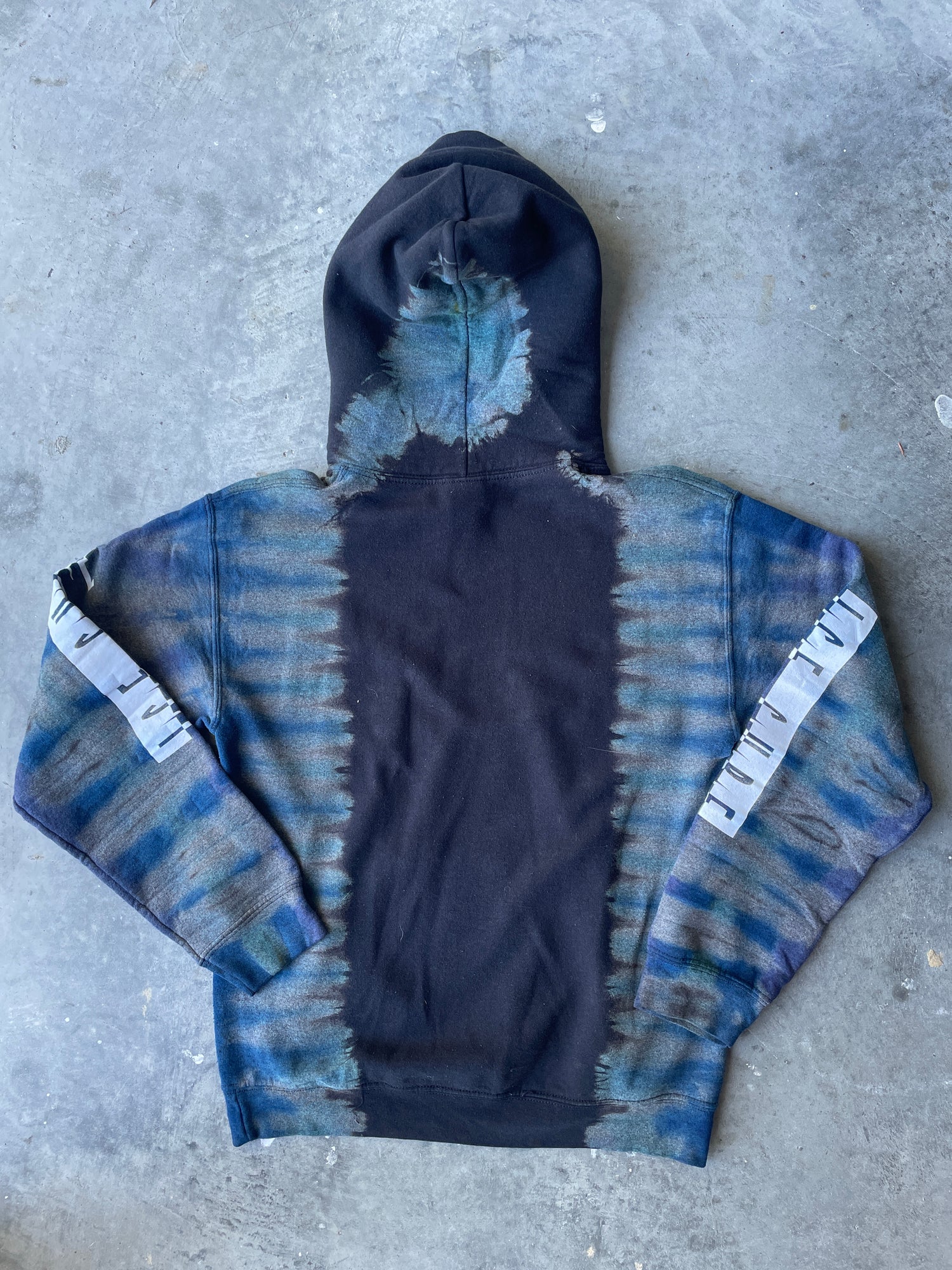 Ice Cube Reverse Tie Dye Hoodie | One-of-a-Kind Black and Blue Sweatshirt | Men's Small