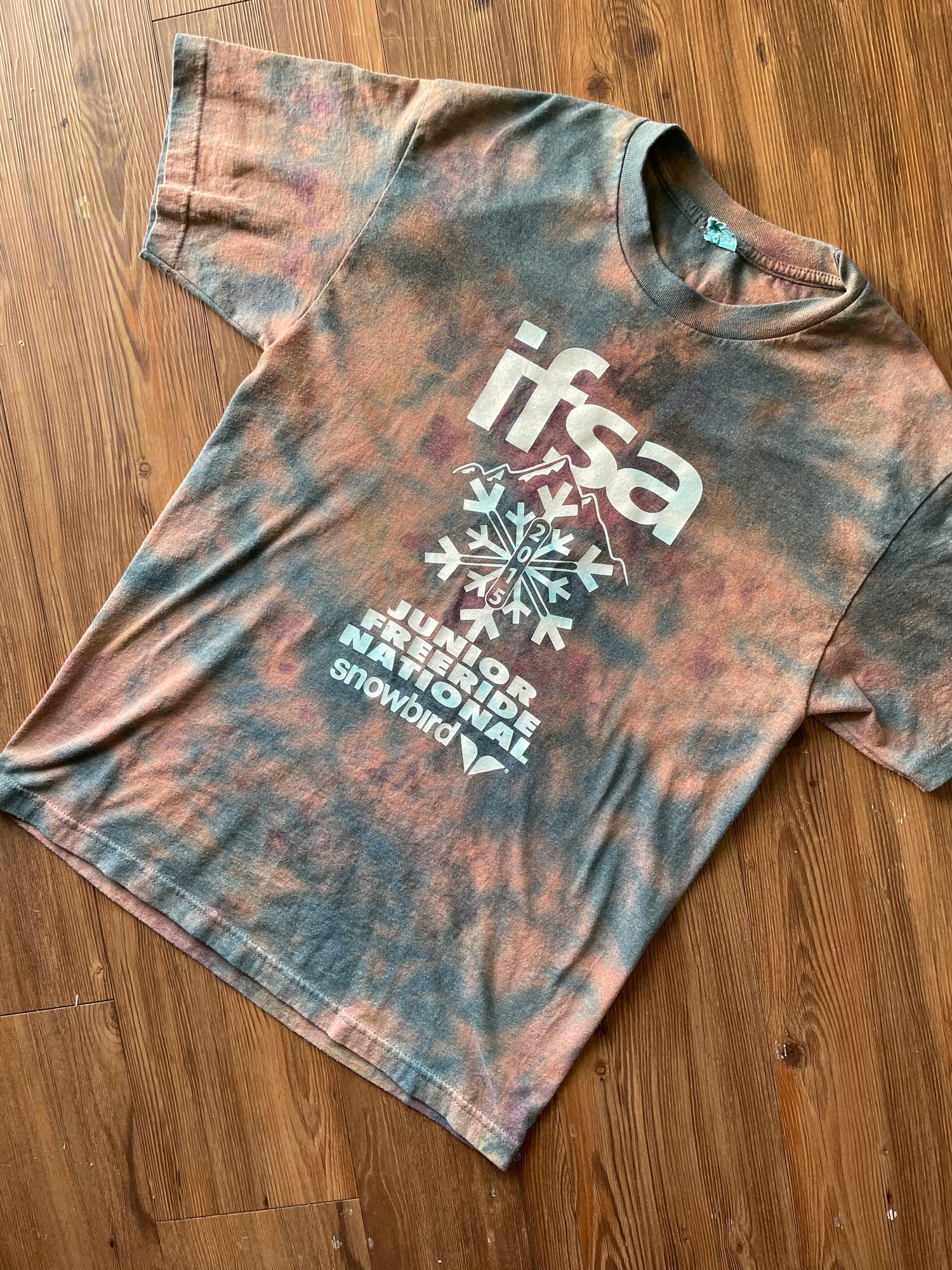 LARGE Men’s 2015 Snowbird IFSA Junior Nationals Galaxy Handmade Tie Dye T-Shirt | One-Of-a-Kind Pastel Blue Short Sleeve