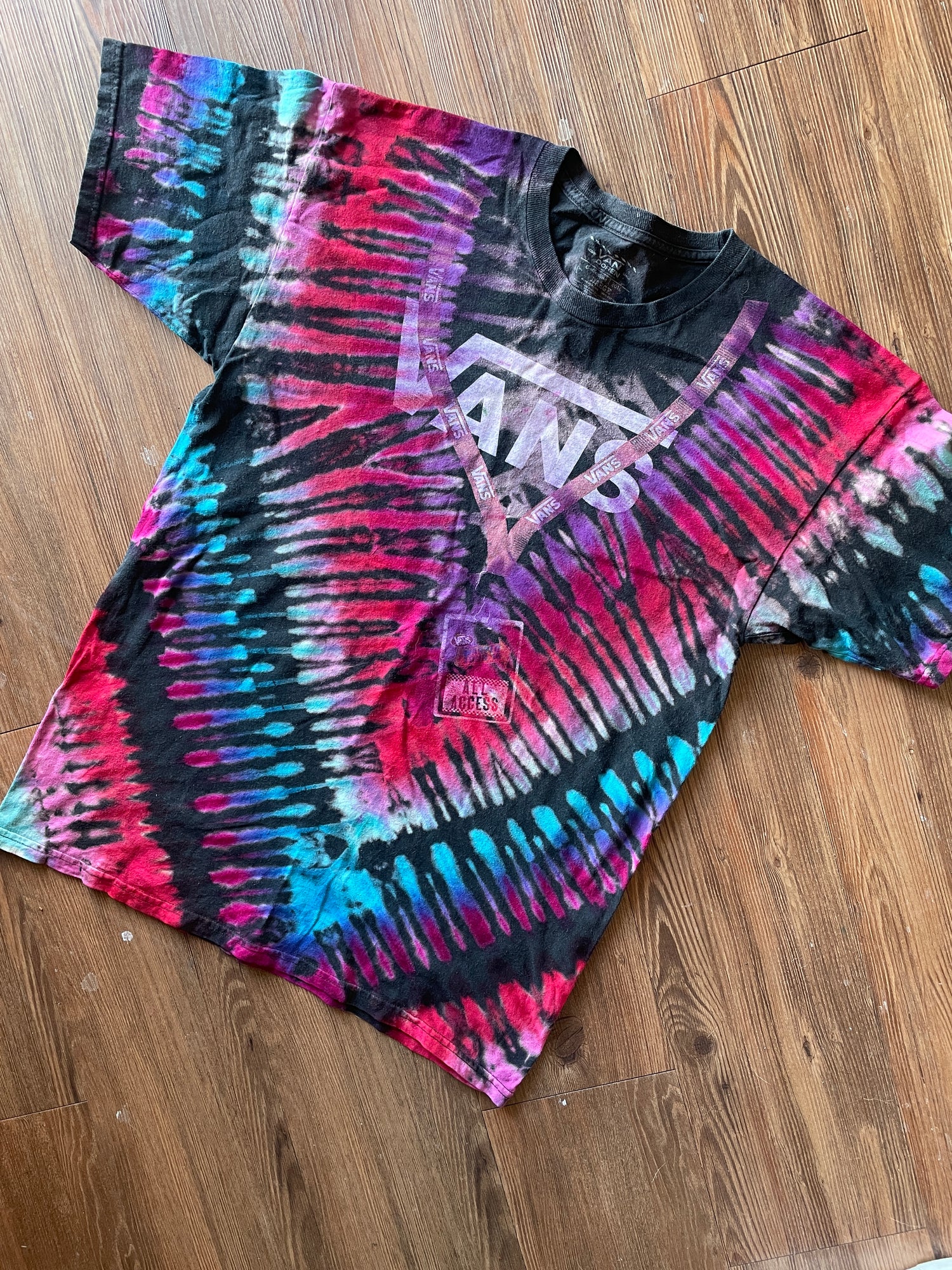 LARGE Men’s 2016 Van’s Warped Tour Tie Dye T-Shirt | Off The Wall All Access Pass Reverse Tie Dye Short Sleeve