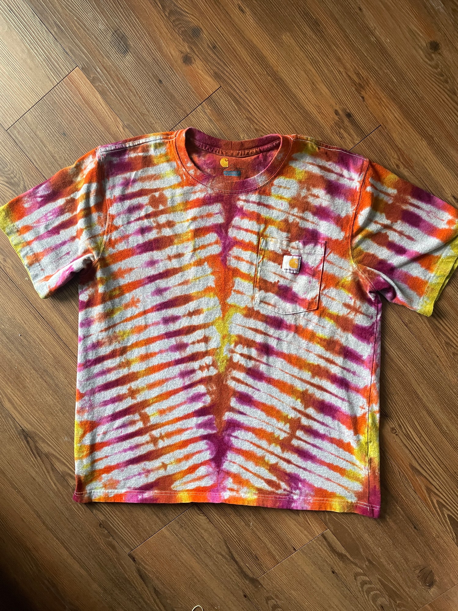LARGE Men’s Carhartt Relaxed Fit Handmade Tie Dye T-Shirt | One-Of-a-Kind Orange and Pink Short Sleeve
