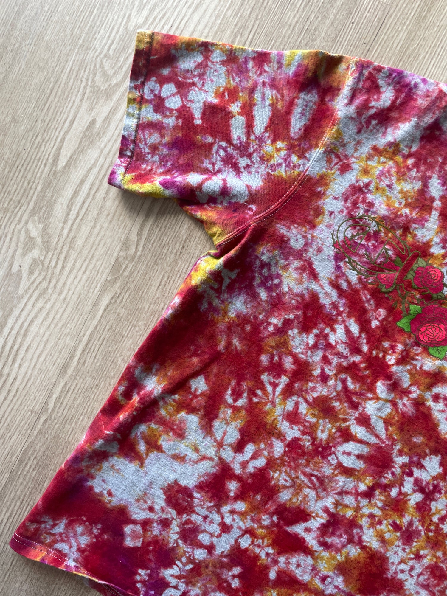 LARGE Men’s Champion Roses Handmade Tie Dye T-Shirt | One-Of-a-Kind Red and Grat Short Sleeve
