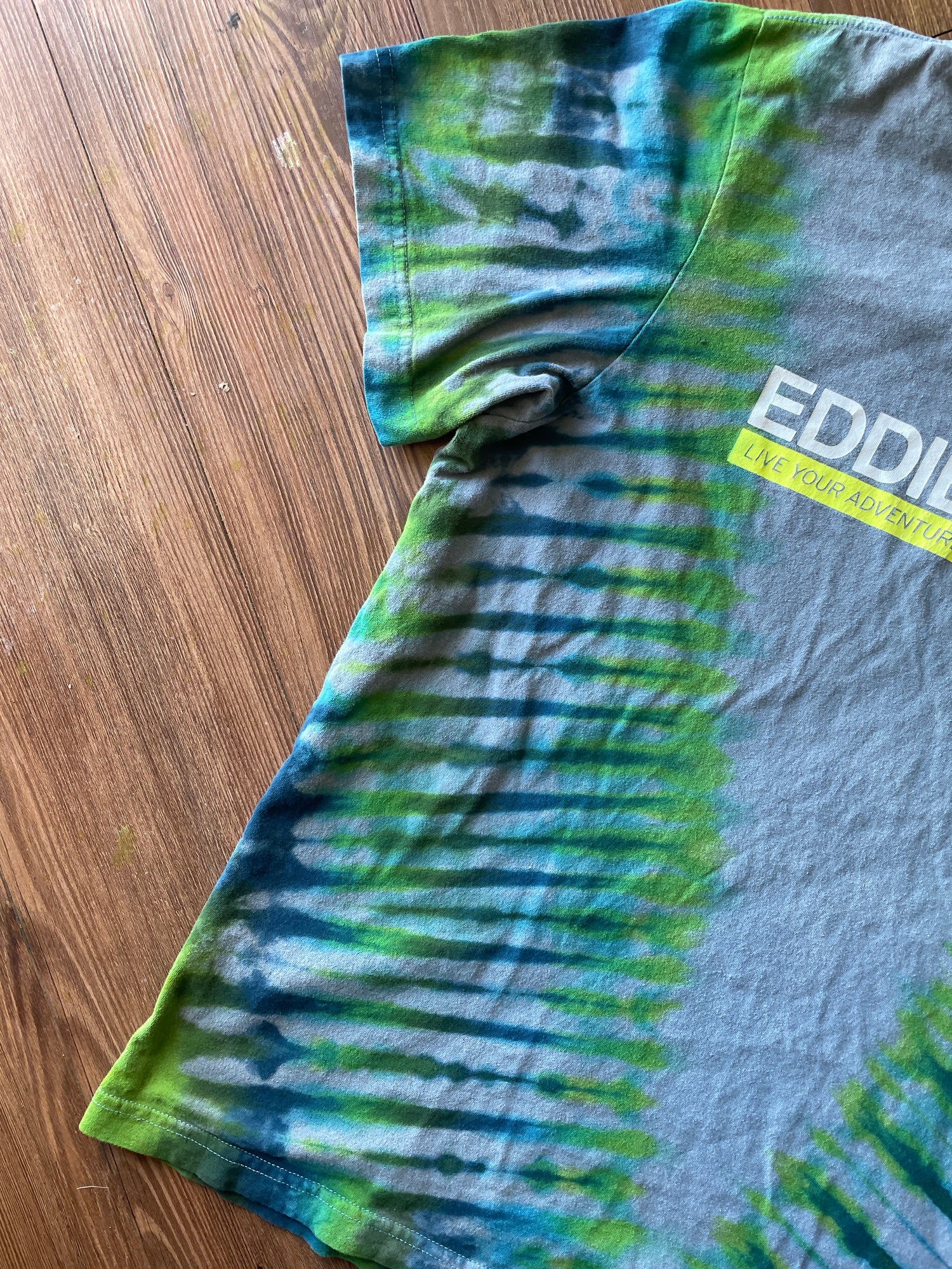LARGE Men’s Eddie Bauer Handmade Tie Dye T-Shirt | One-Of-a-Kind Gray, Blue, and Green Short Sleeve