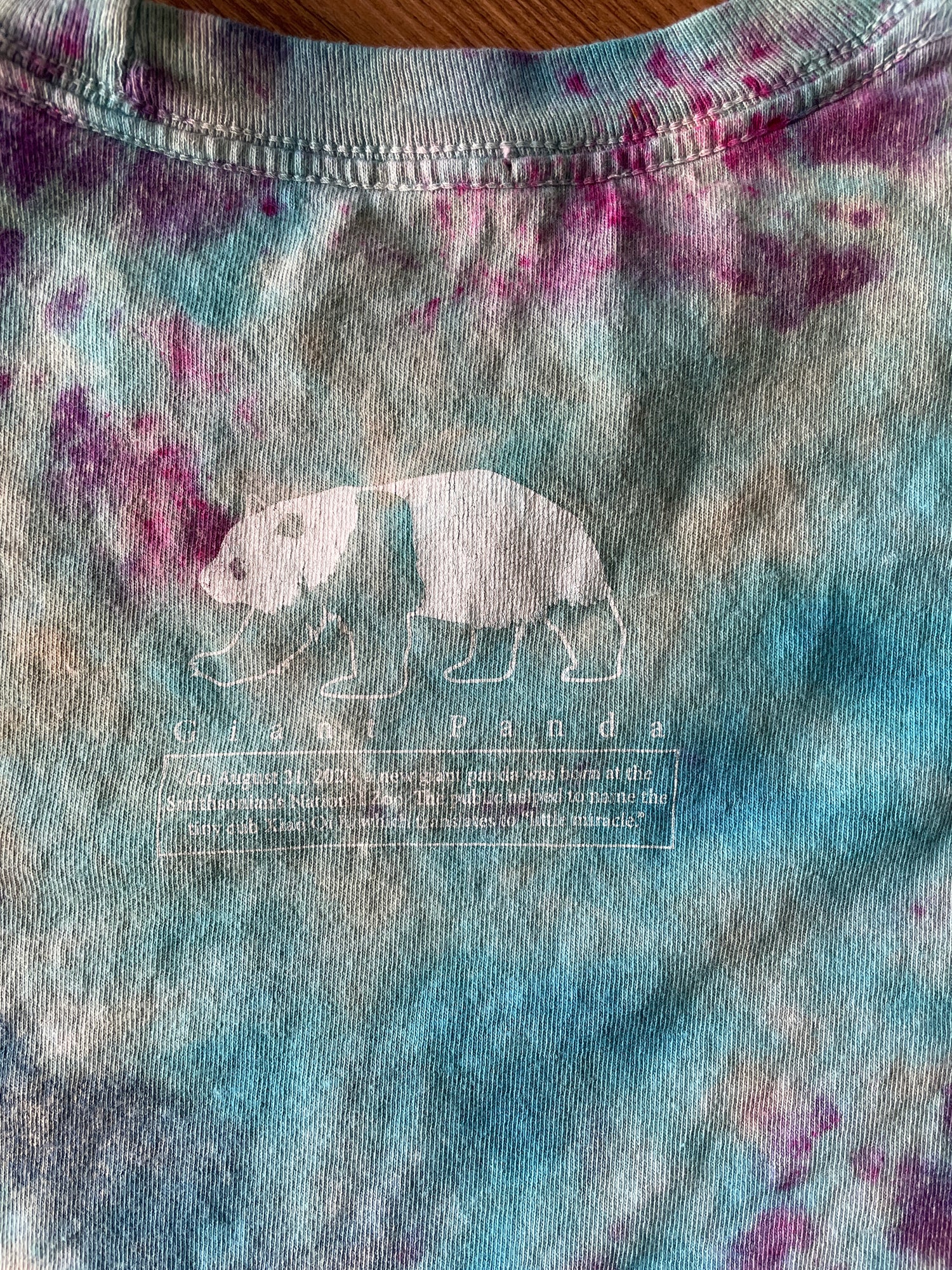 LARGE Men’s Giant Panda Galaxy Handmade Tie Dye T-Shirt | One-Of-a-Kind Pastel Blue and Purple Short Sleeve