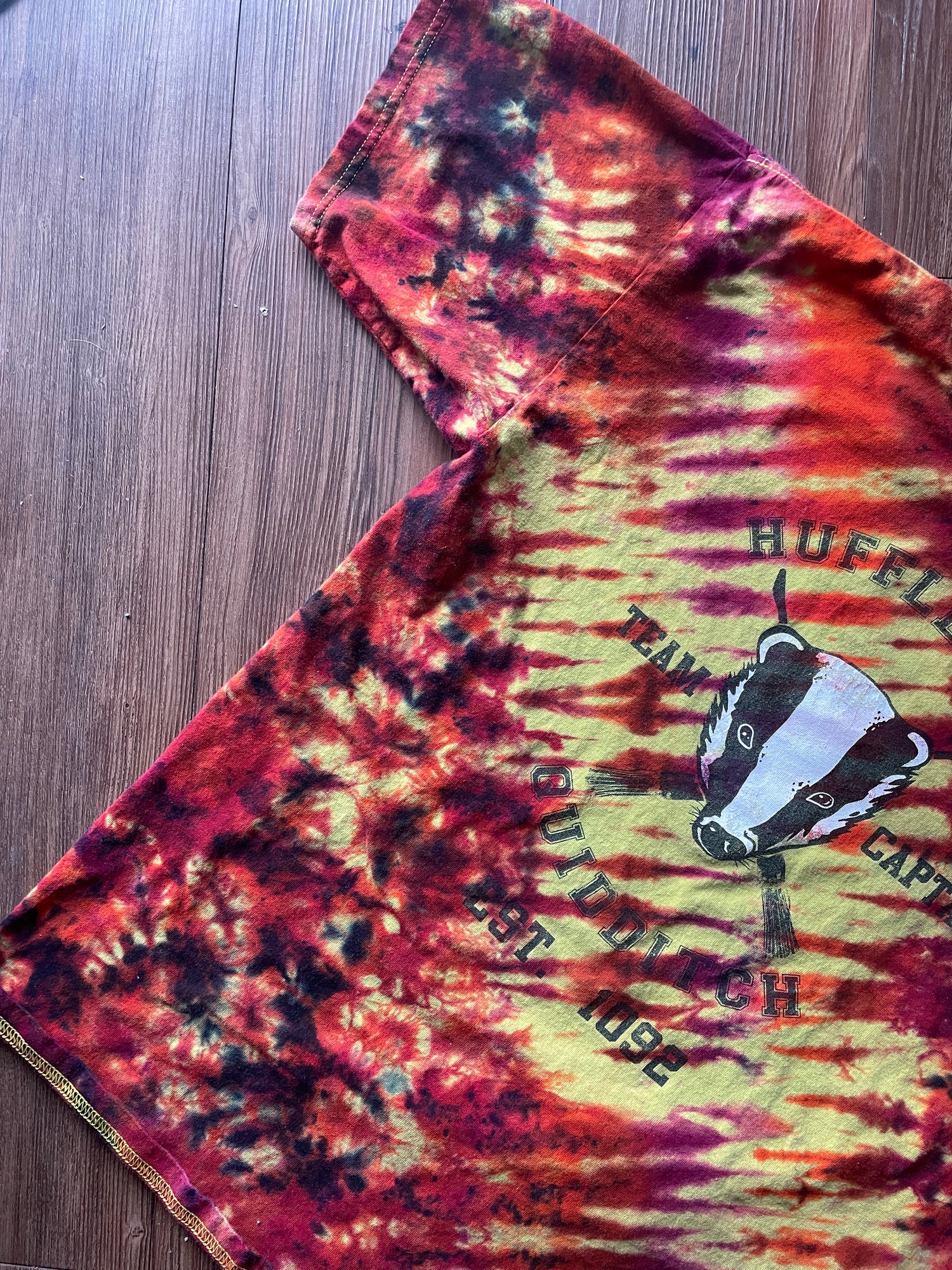 LARGE Men’s Hufflepuff Quidditch Team Captain Handmade Tie Dye T-Shirt | One-Of-a-Kind Yellow and Orange Short Sleeve
