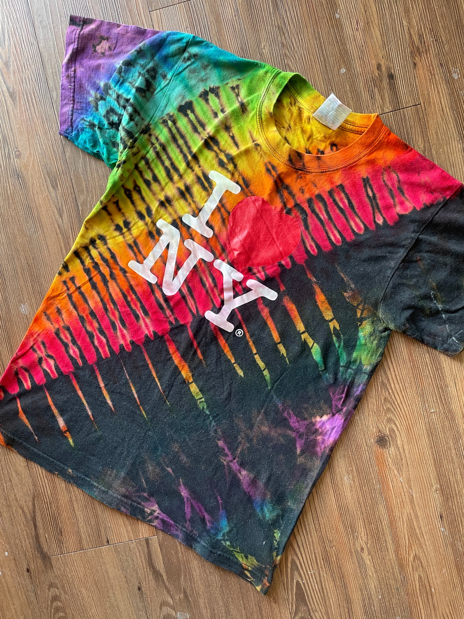 LARGE Men’s I Love New York Tie Dye T-Shirt | New York City Souvenir Reverse Tie Dye Short Sleeve