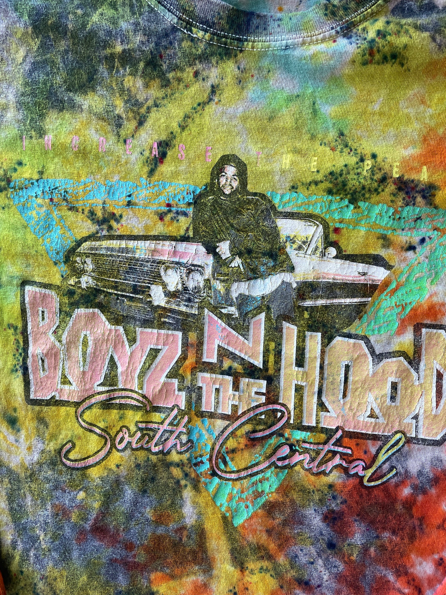 LARGE Men’s Ice Cube Boyz n the Hood Tie Dye Long Sleeve T-Shirt | One-Of-a-Kind Upcycled Multicolor Neon Crumpled Top