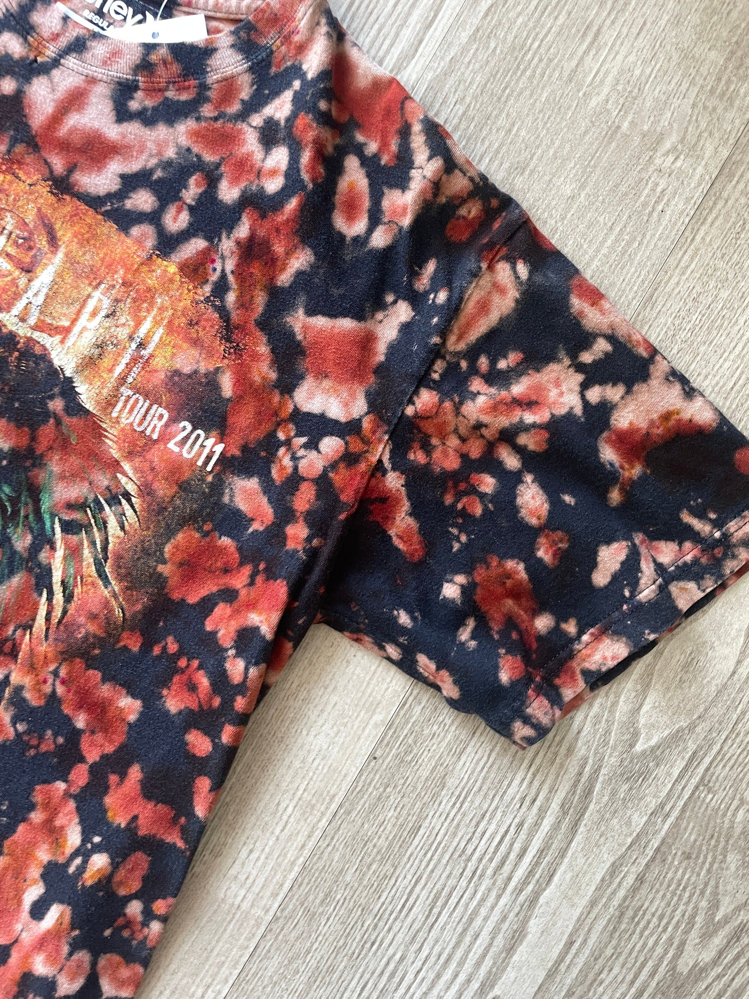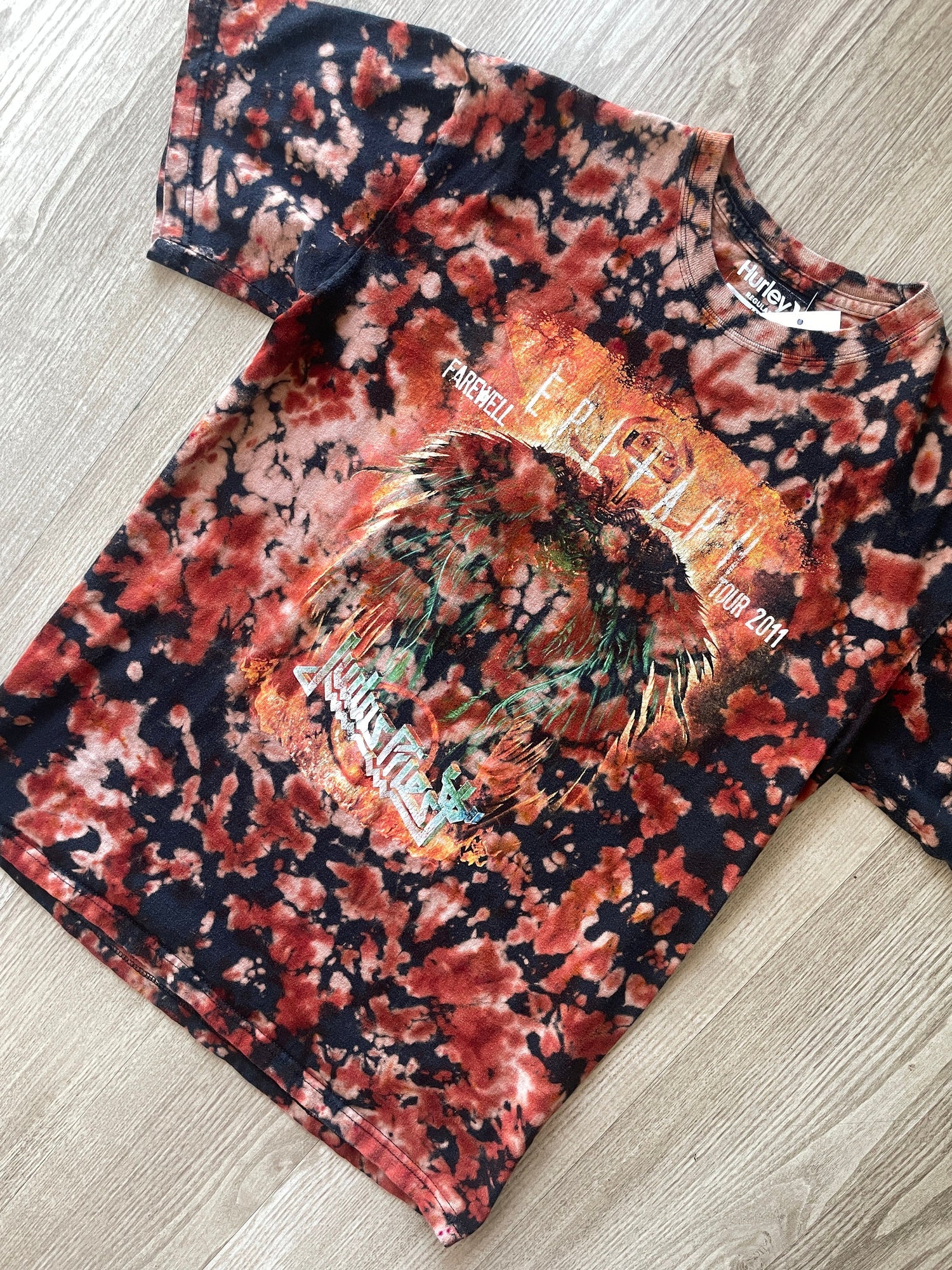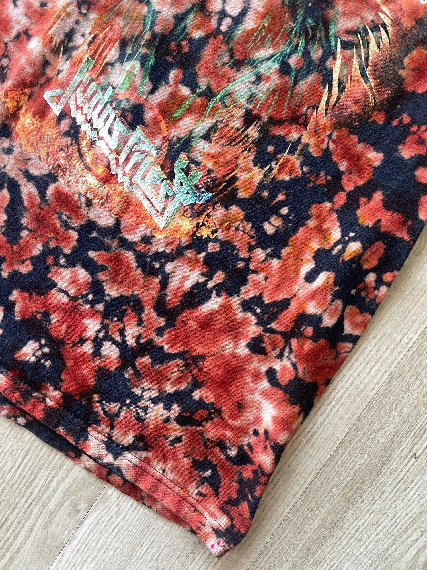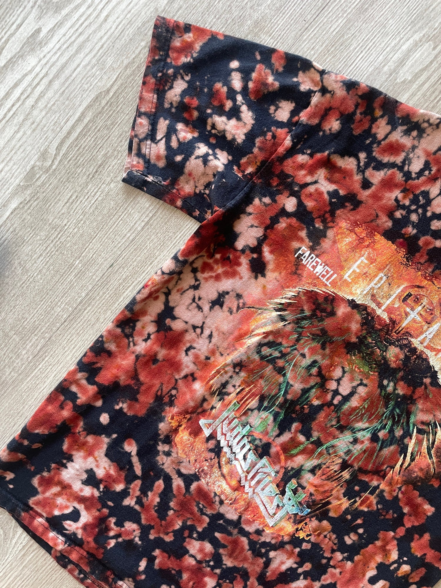 LARGE Men’s Judas Priest 2011 Farewell Tour Reverse Tie Dye Short Sleeve Double-sided T-Shirt | One-Of-a-Kind Upcycled Black and Orange Top