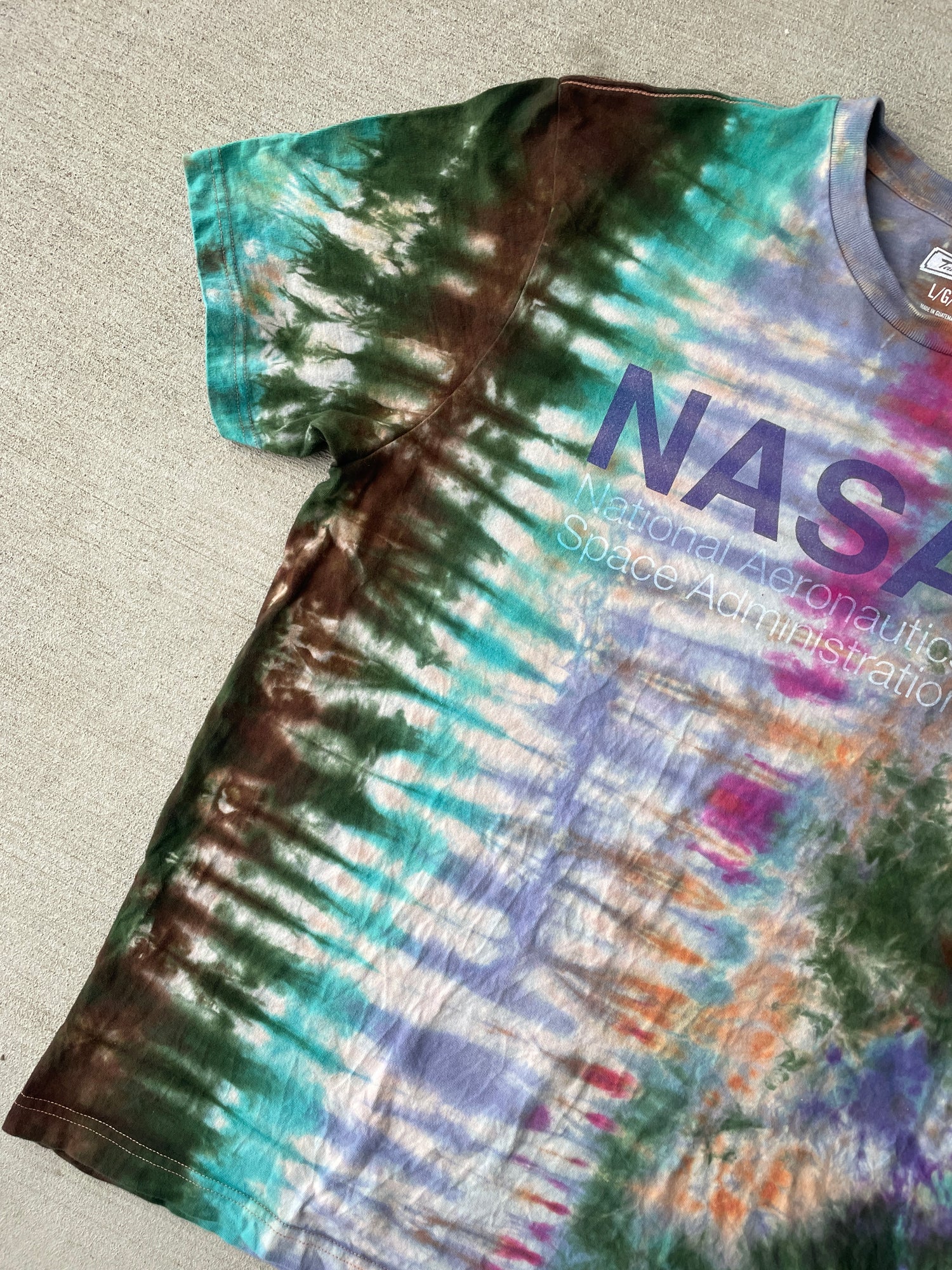 Large Men’s NASA Earth Tones Handmade Tie Dye T-Shirt | Brown and Green Reverse Tie Dye Short Sleeve