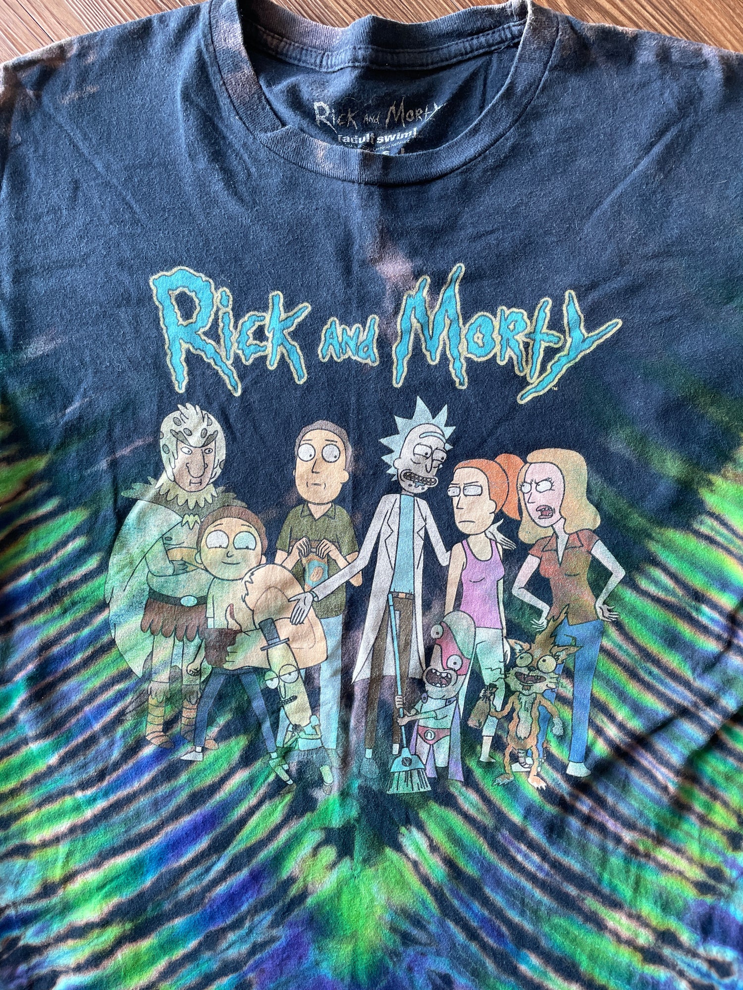 LARGE Men’s Rick and Morty Tie Dye T-Shirt | Adult Swim Characters Reverse Tie Dye Short Sleeve