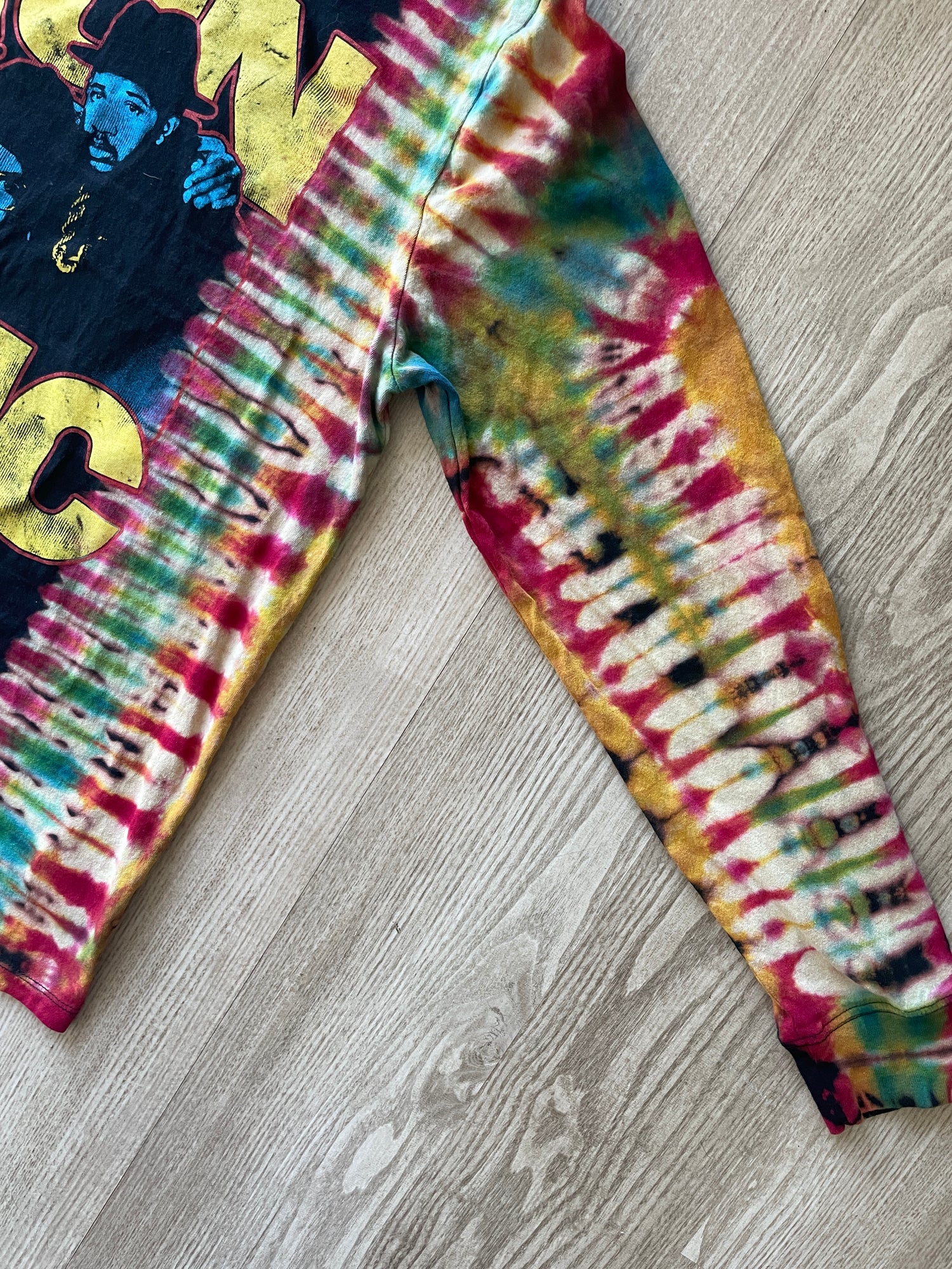 LARGE Men’s Run DMC Reverse Tie Dye Long Sleeve T-Shirt | One-Of-a-Kind Upcycled Black and Red Pleated Top