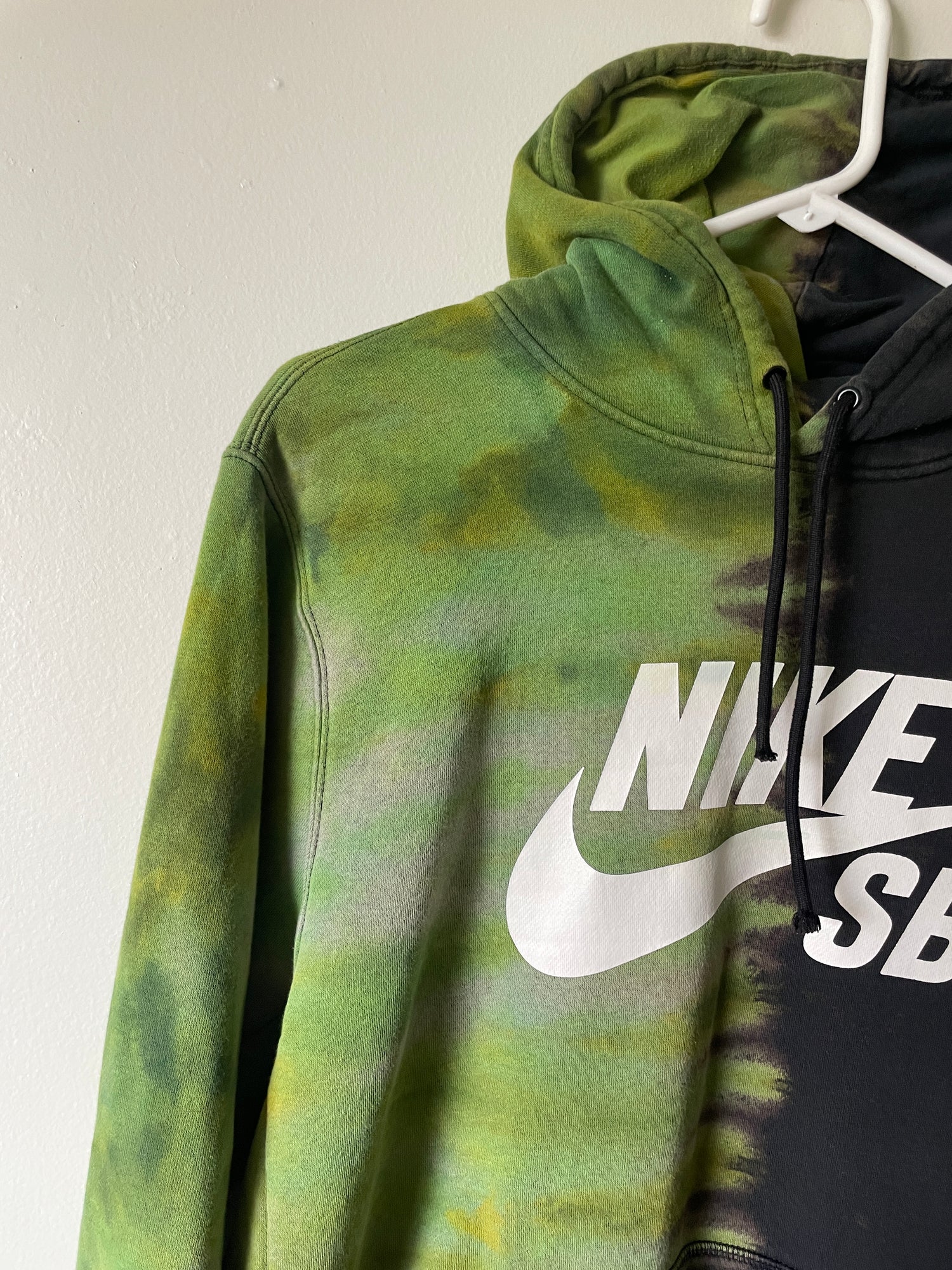 Large Men's Nike SB Reverse Tie Dye Hoodie | One-Of-a-Kind Upcycled Black and Green Half-and-Half Sweatshirt