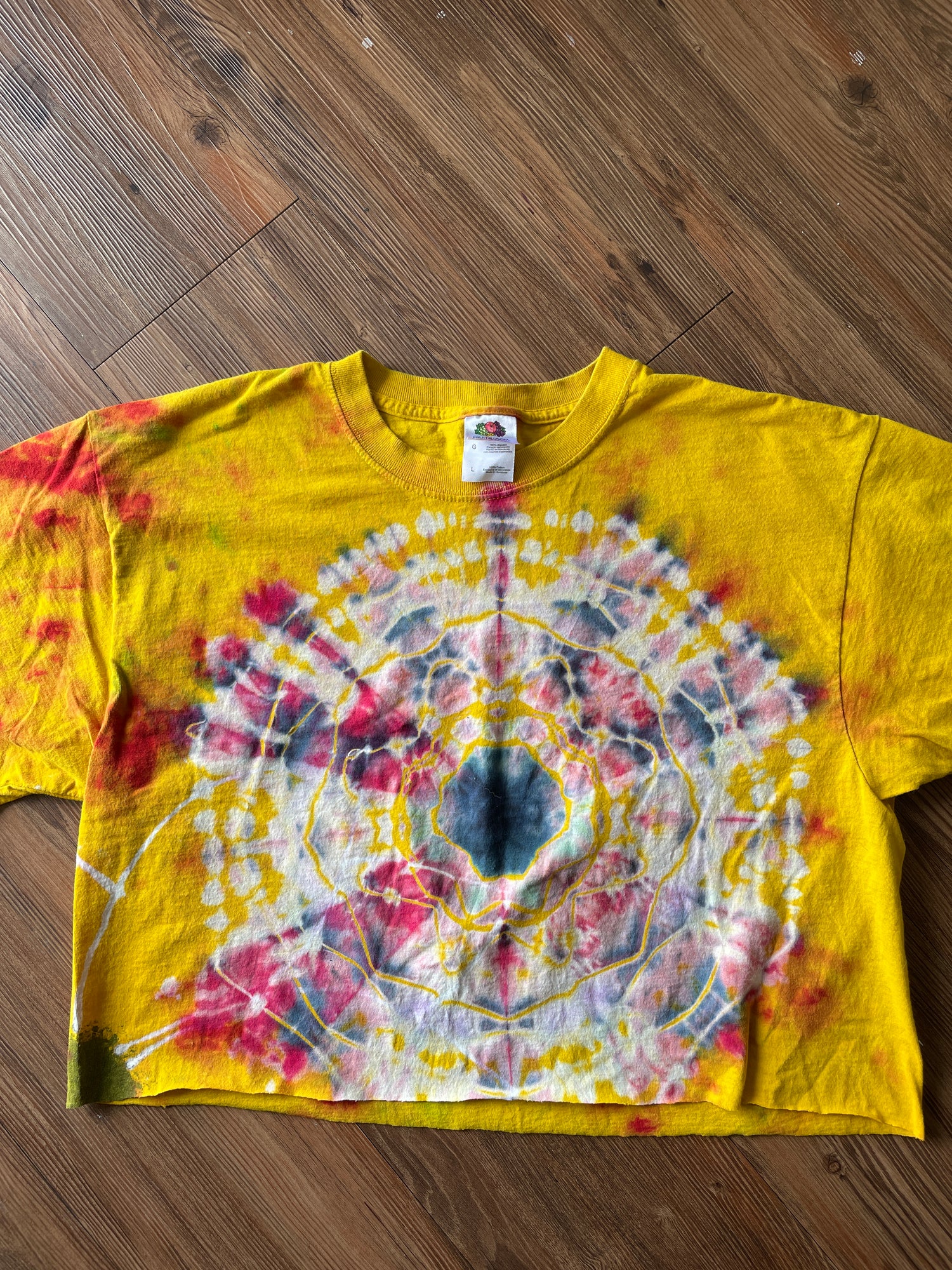 Large Men's Yellow Mandala Tie Dye Short Sleeve Crop Top
