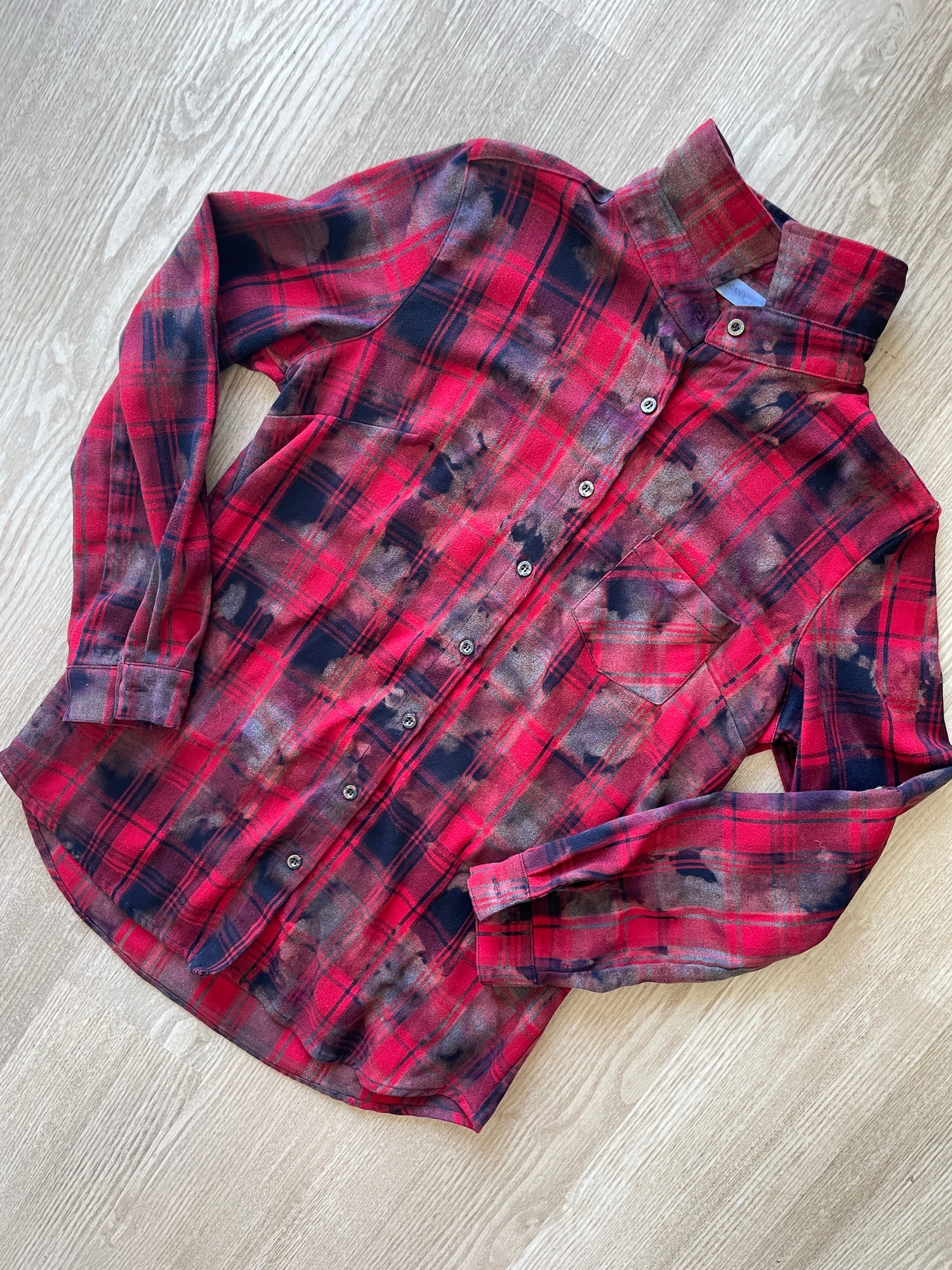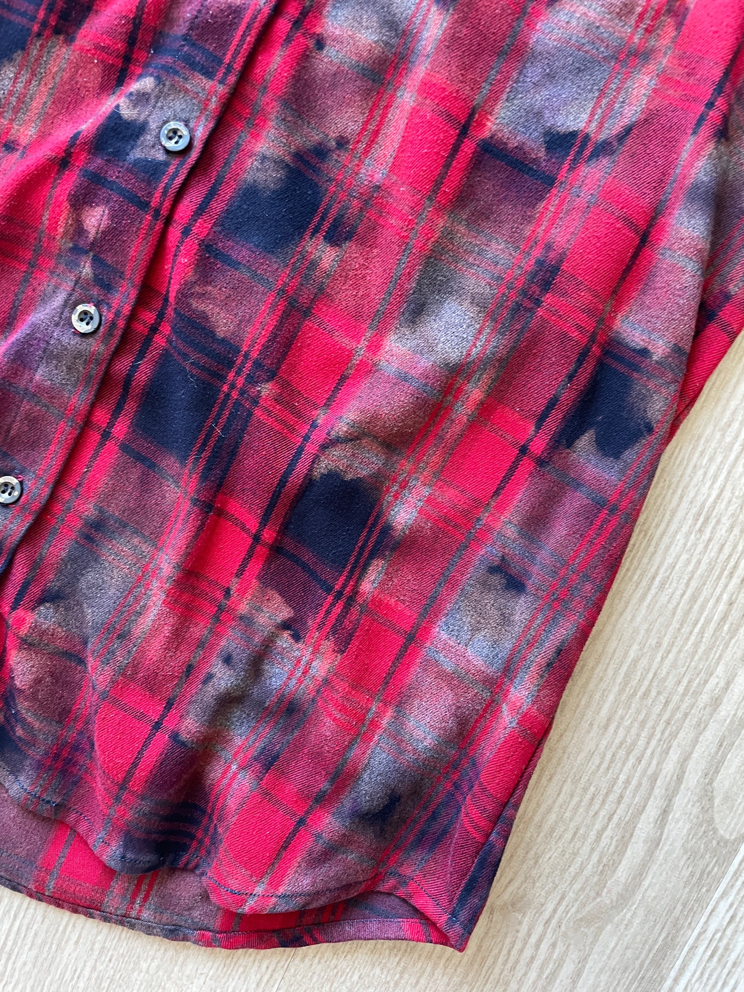 LARGE Women’s Red, Black, and Gray Handmade Tie Dye Flannel Shirt | One-Of-a-Kind Upcycled Long Sleeve