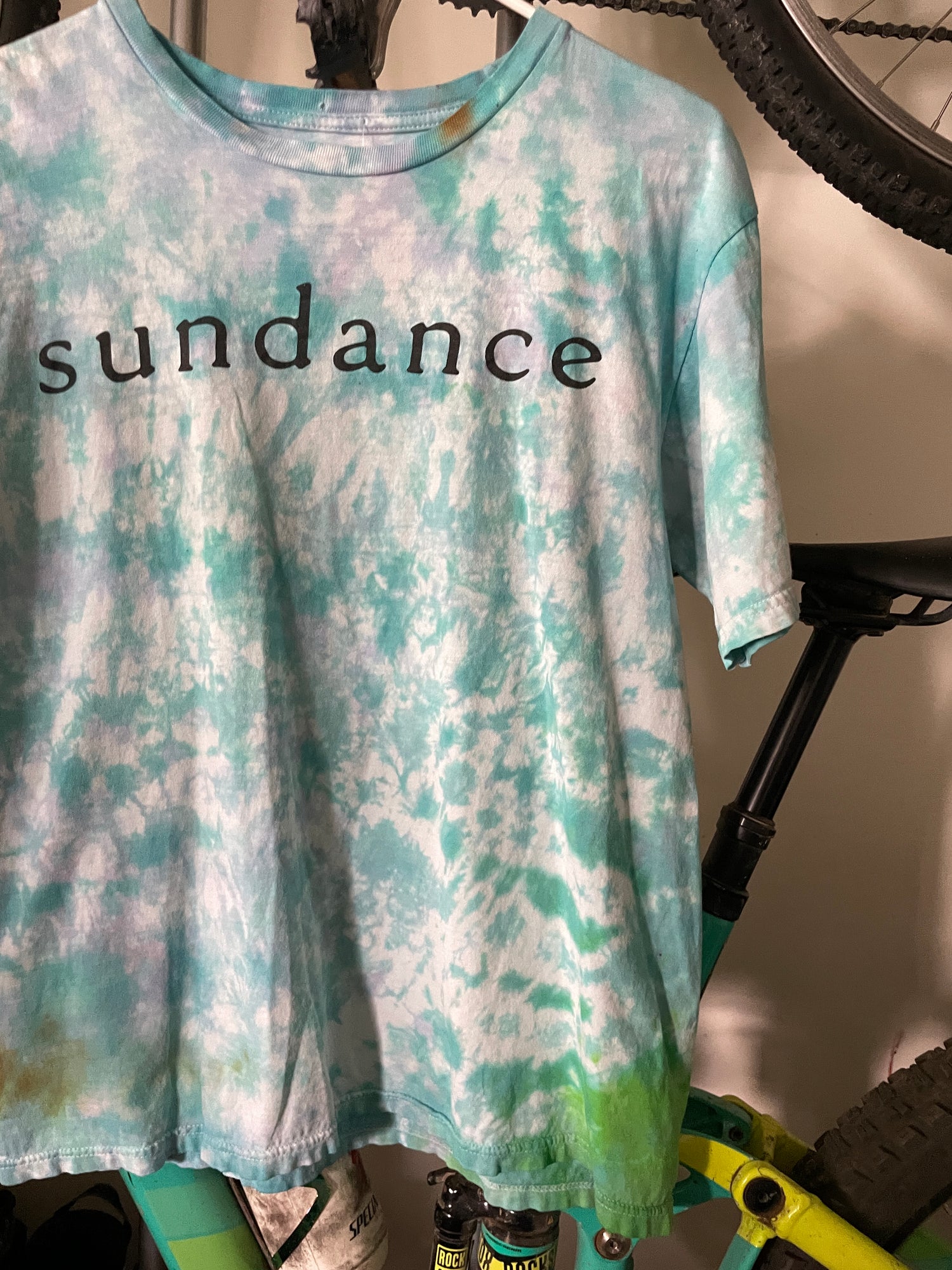 Sundance Handmade Tie Dye T-Shirt | White and Mint Green Crumpled Tie Dye Short Sleeve | Women’s Large