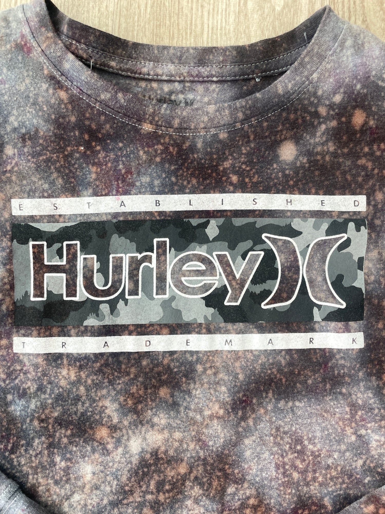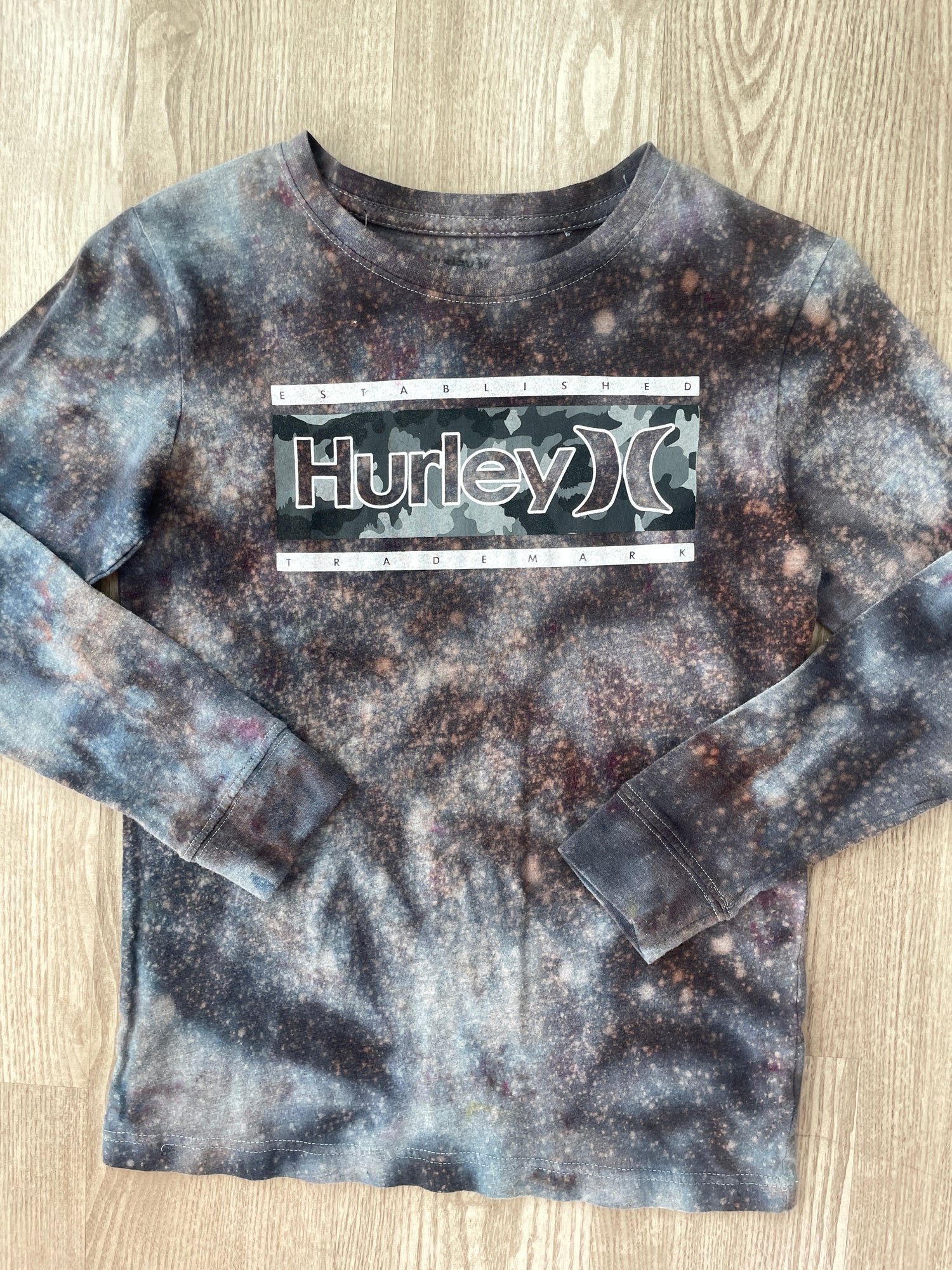 LARGE Youth Boys Hurley Handmade Galaxy Tie Dye Short Long Sleeve T-Shirt | One-Of-a-Kind Upcycled Black and Gray Ice Dye Top