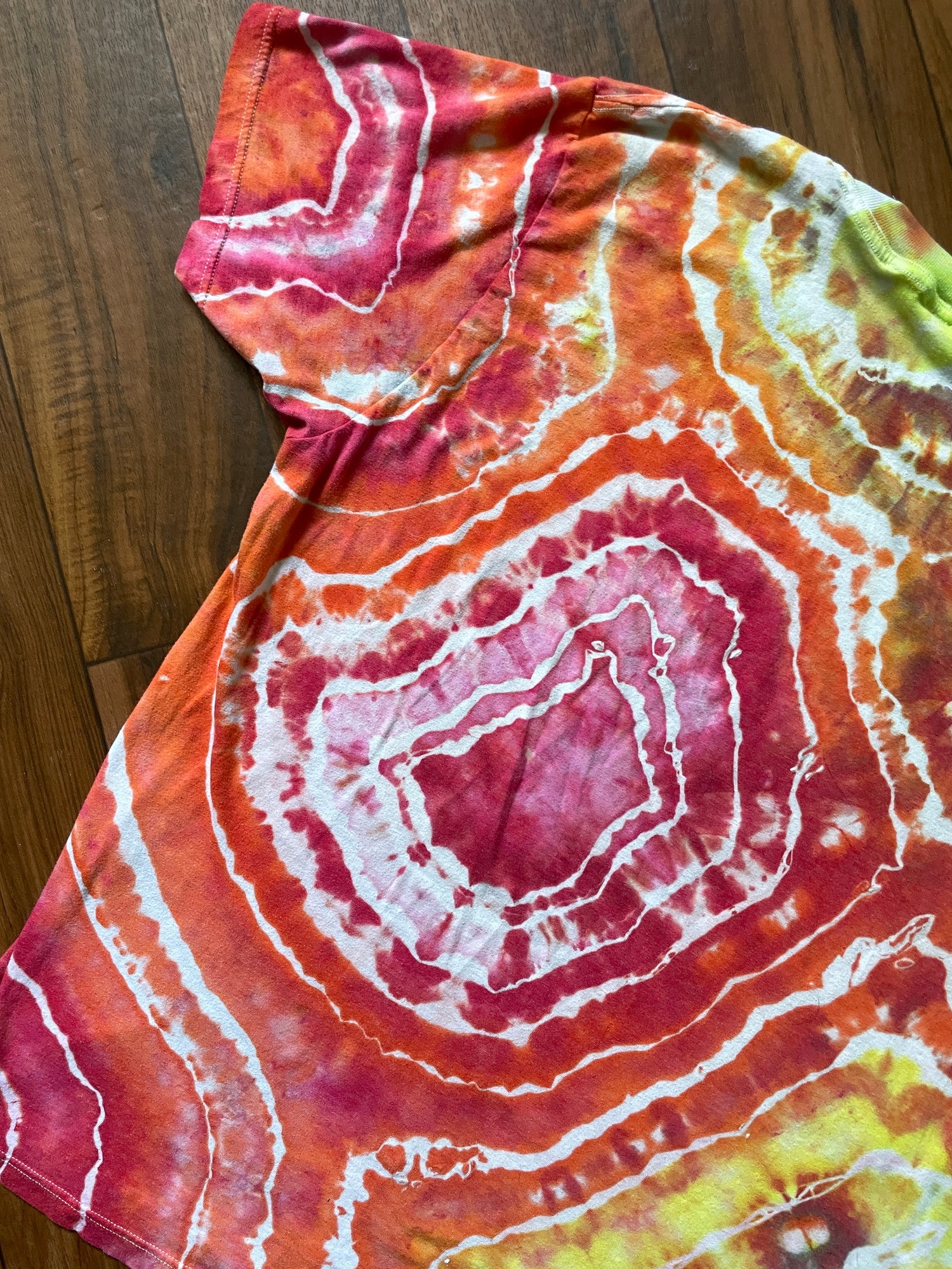 100% cotton shirt tie dyed with rainbow geode tie dye pattern