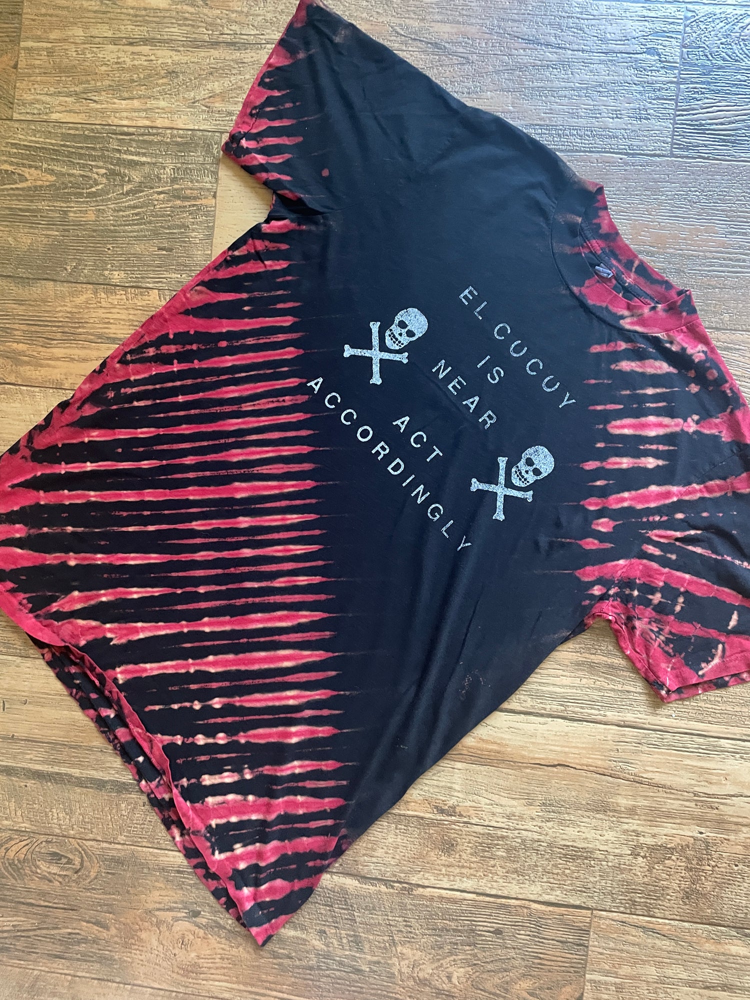 Local Boogeyman El Cucuy Is Near Black and Red Hand-Tie Dyed Short Sleeve T-Shirt (Men's Large)