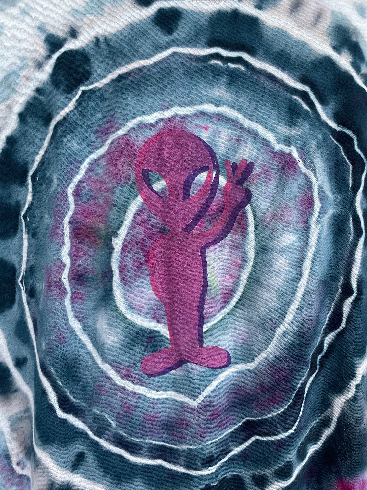Medium Men's Groovy Alien Handmade Galaxy Geode Tie Dye T-Shirt | One-Of-a-Kind Upcycled Blue and White Short Sleeve Shirt