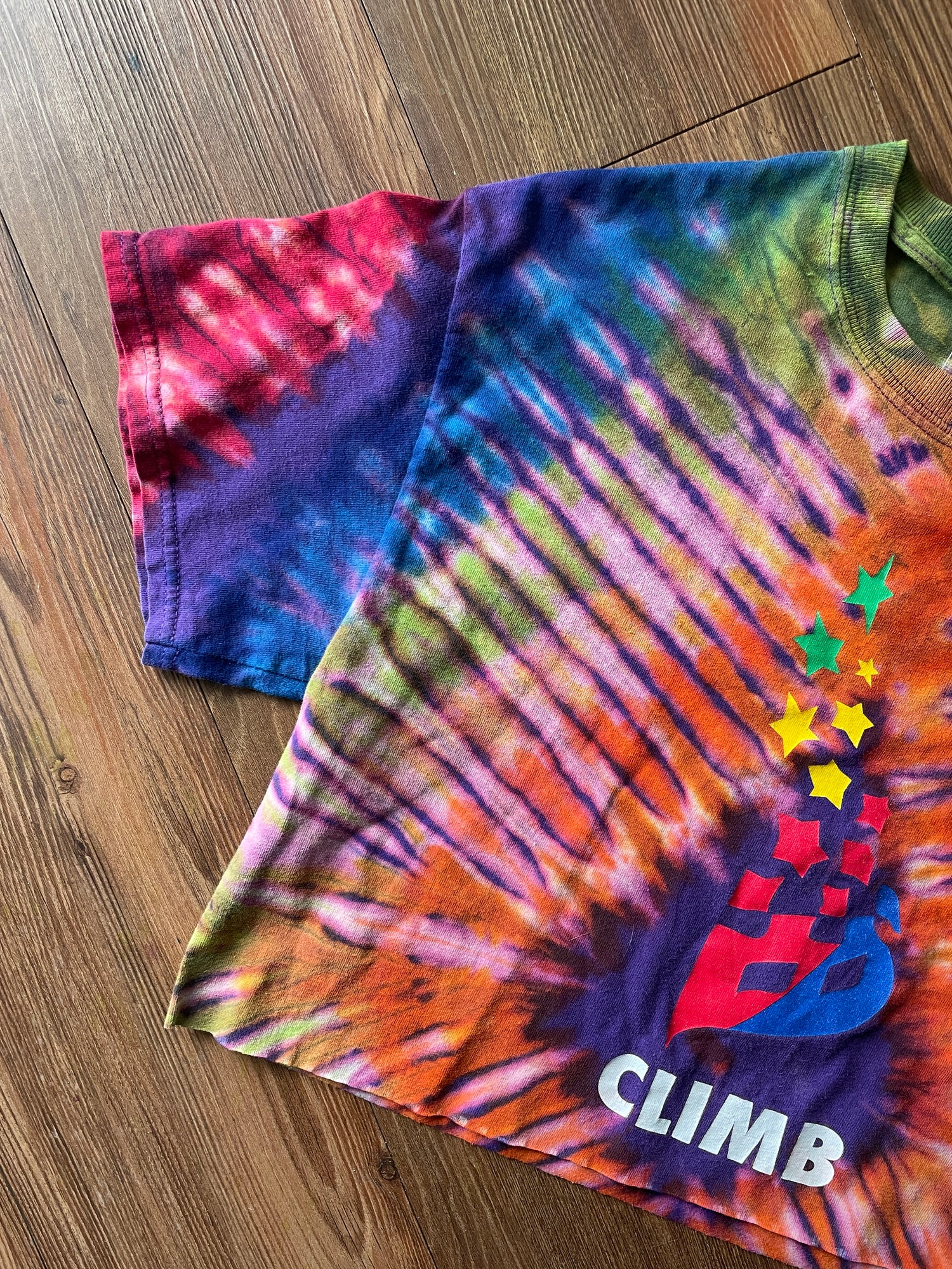 MEDIUM Men’s Climbing Tie Dye Cropped T-Shirt | Purple and Rainbow Reverse Tie Dye Short Sleeve Crop Top