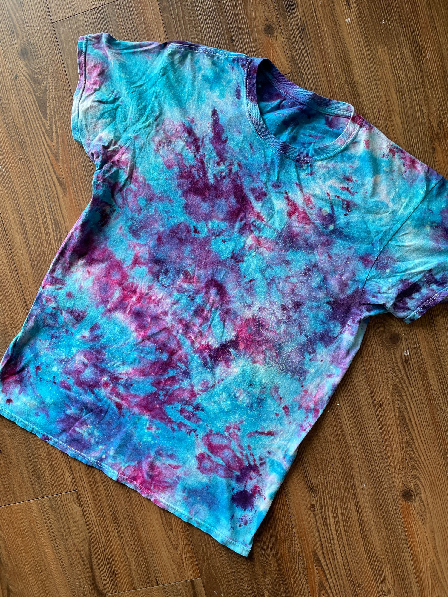 Large Men’s Galaxy Dye Tie Dye T-Shirt | Blue and Purple Space Ice Dye Tie Dye Short Sleeve