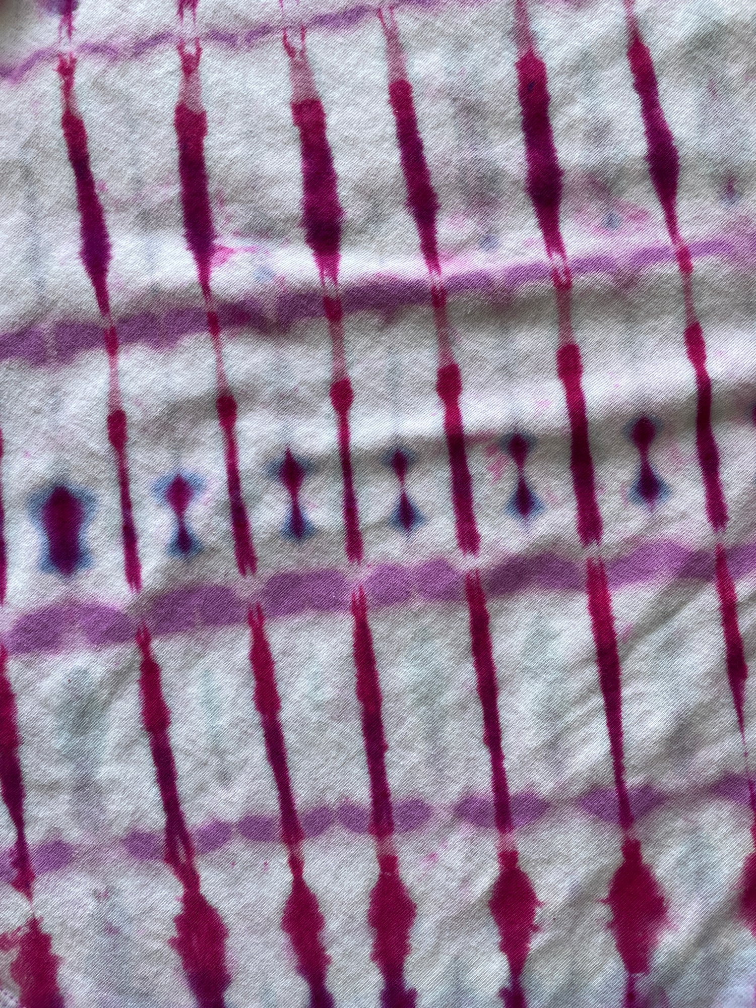 pink tshirt bleached dyed with shades of pink pleated tie dye pattern