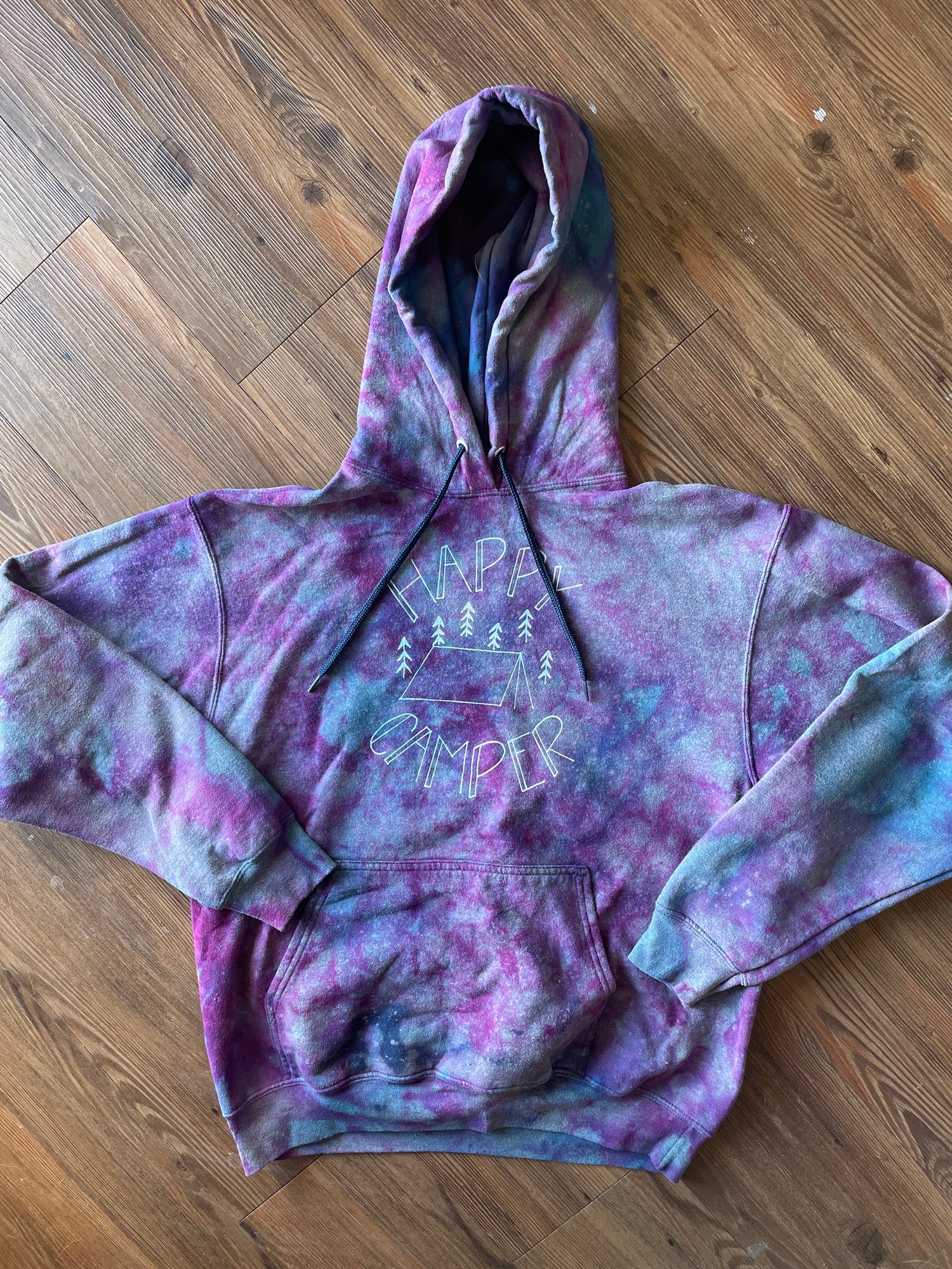 MEDIUM Men’s Happy Camper Galaxy Tie Dye Sweatshirt | Pastel Purple Ice Dye Hoodie