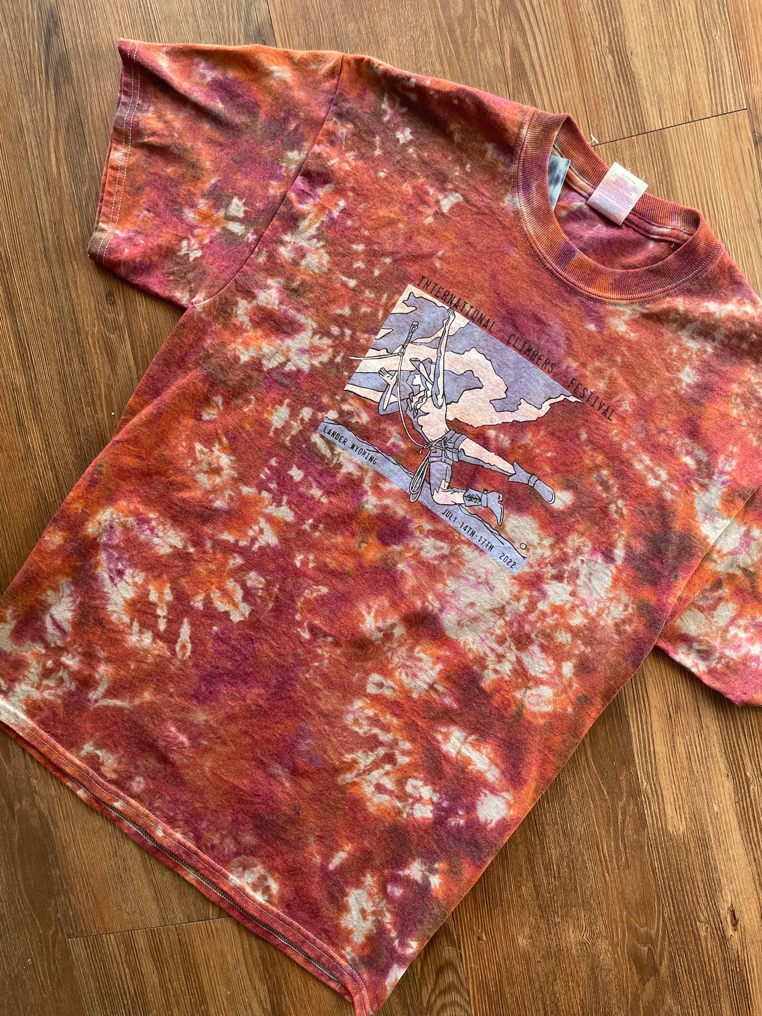 MEDIUM Men’s International Climbing Festival Tie Dye T-Shirt | Red and Orange Crumpled Short Sleeve