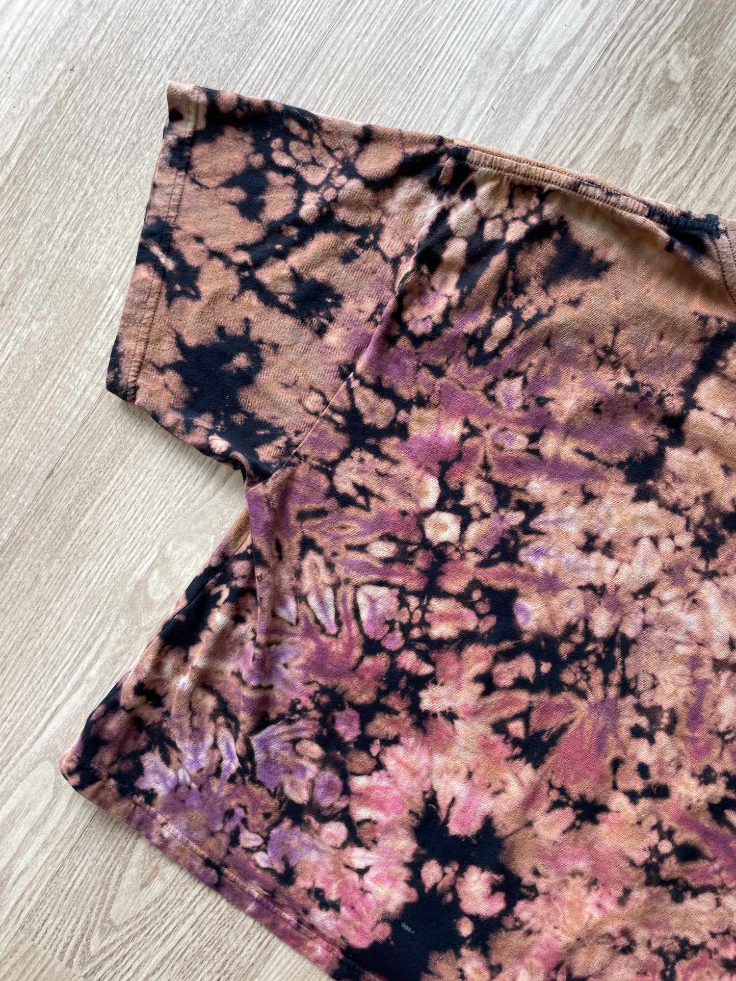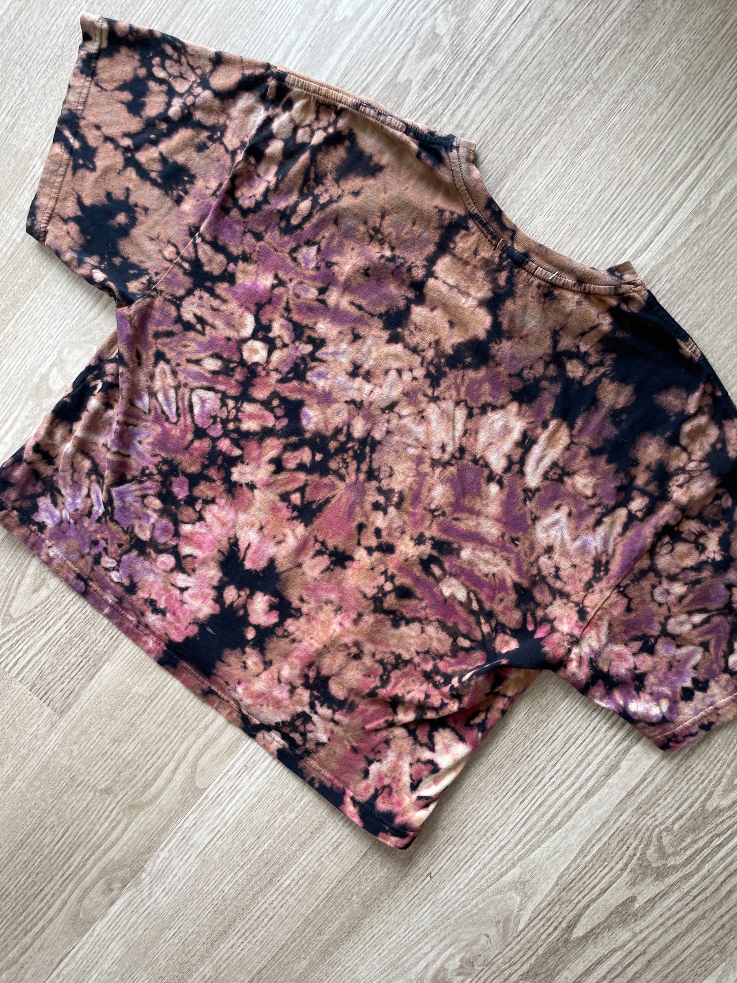 MEDIUM Men’s Outdoor Adventure Wilderness Club Handmade Tie Dye Cropped T-Shirt | One-Of-a-Kind Black Acid Dye Short Sleeve