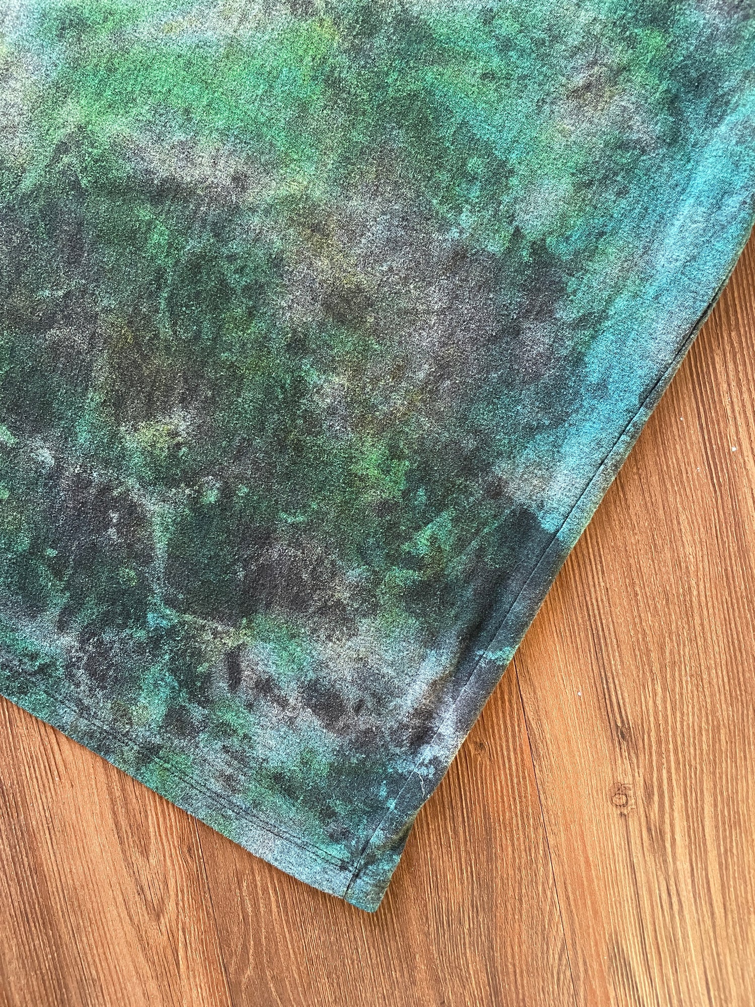 black tshirt dyed with subtle green galaxy tie dye pattern